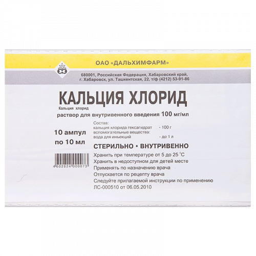 Кальция Хлорид 10 % 10 мл 10 шт раствор для внутривенного введения (арт. 10047460) Цену уточняйте по телефону в интернет аптеке в Москве и Московской области — Aptstore