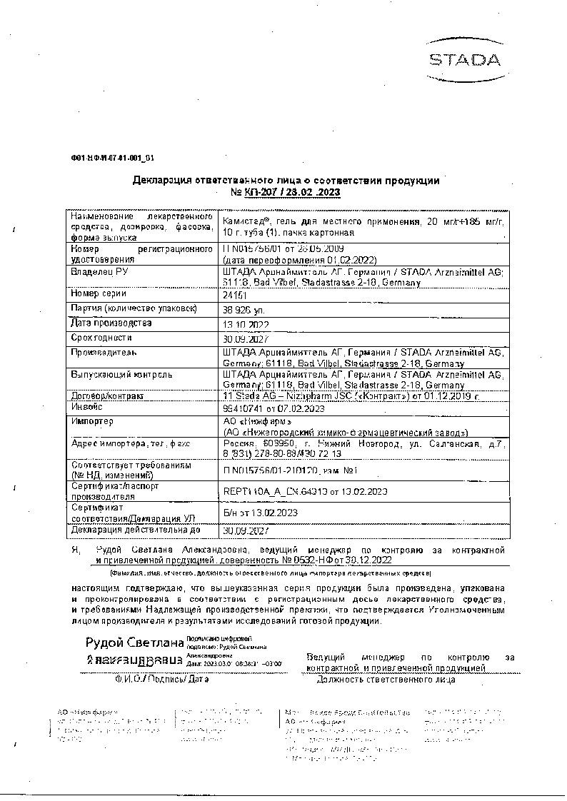 Если во время применения Камистада® появились признаки аллергии, препарат следует отменить и обратиться к врачу.