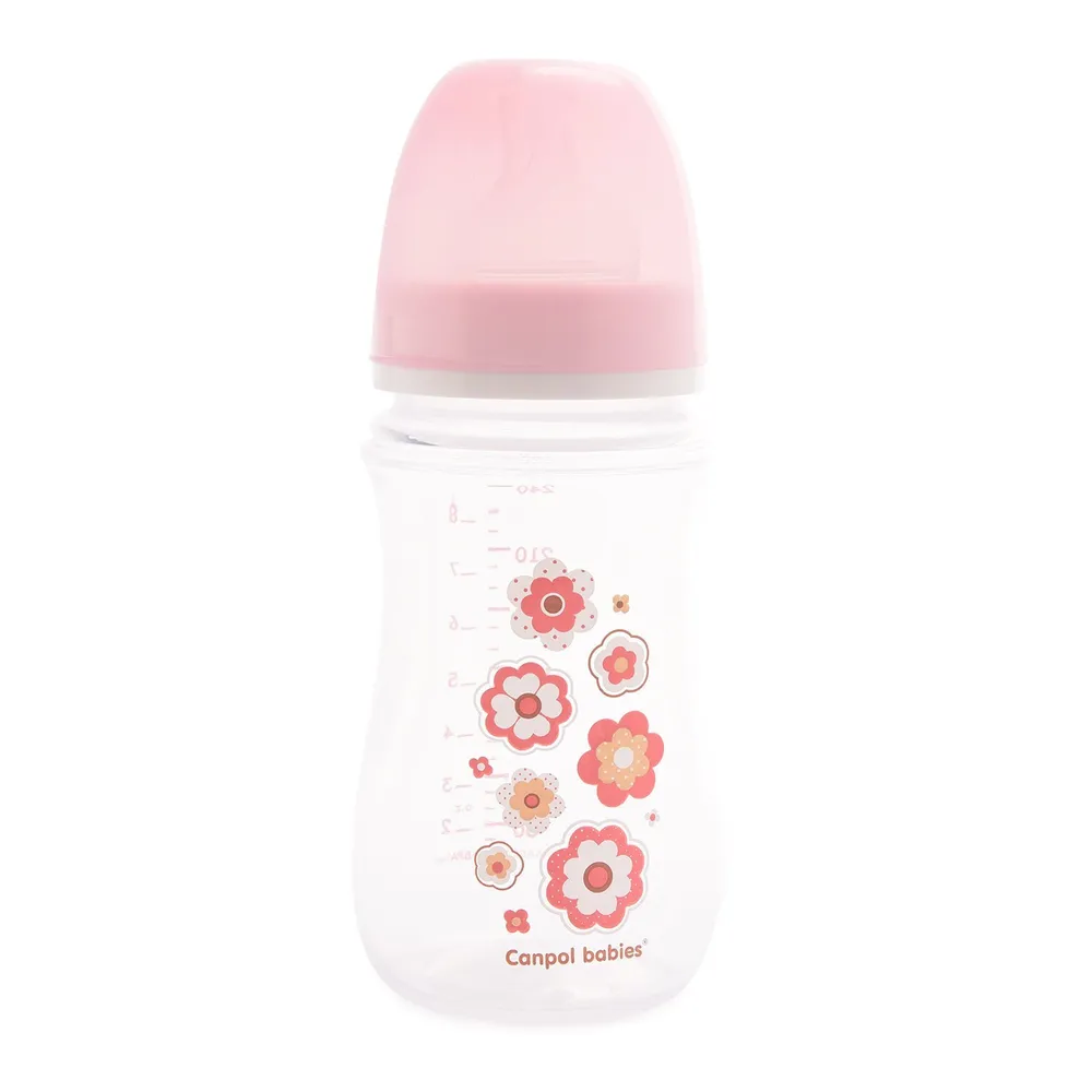 Бутылочка PP Easy start c широким горлышком антиколиковая 240 мл 3+ Newborn baby. Бутылочка Easy Start предназначена для кормления детей с 3-х месяцев и оснащена силиконовой соской медленного потока, которая подходит детям, находящимся на смешанном вскармливании. Специальный антиколиковый клапан на соске препятствует заглатыванию лишнего воздуха во время кормления и тем самым уменьшает риск возникновения колик. Широкое горлышко бутылочки позволяет легко наполнять ее едой и содержать в чистоте, а четкая мерная шкала позволит отмерить необходимое количество пищи. Бутылочка выполнена из легкого, но прочного материала- полипропилена и не содержит Бисфенол-А, она отлично лежит в руке и делает процесс кормления еще удобнее. Особенности: Легкая и прозрачная. Удобная форма. Широкая (легко мыть и наполнять)точная и четкая мерная шкала. Изготовлена из безопасных материалов. Соска с антиколиковым клапаном. Нежная цветовая гамма.