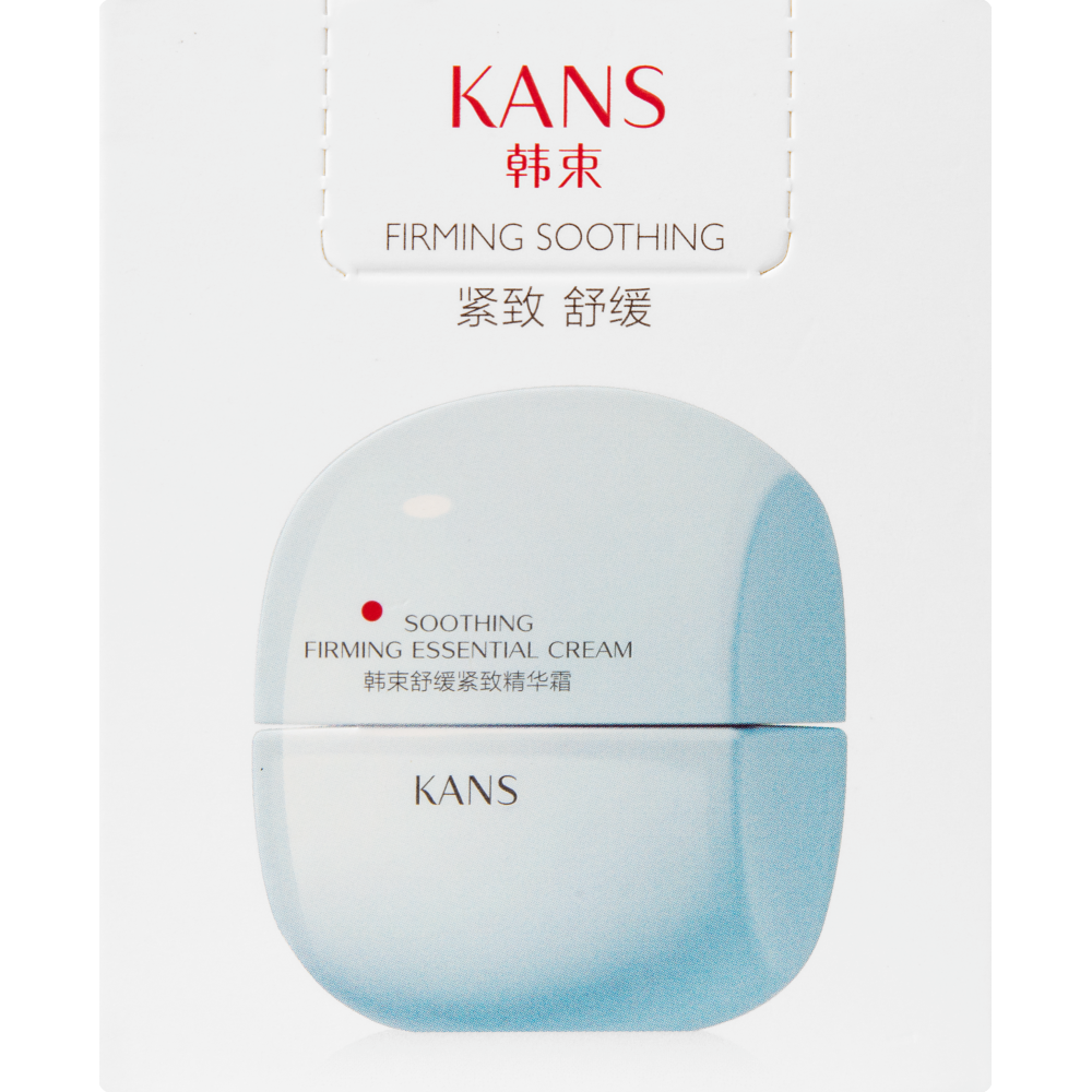 Крем для лица KANS в голубой баночке из линейки Soothing Firming Essential – эффективное средство для завершающего этапа ухода за чувствительной кожей лица с первыми признаками возрастных изменений (30+), мелкими мимическими морщинами, потерей упругости и сияния.