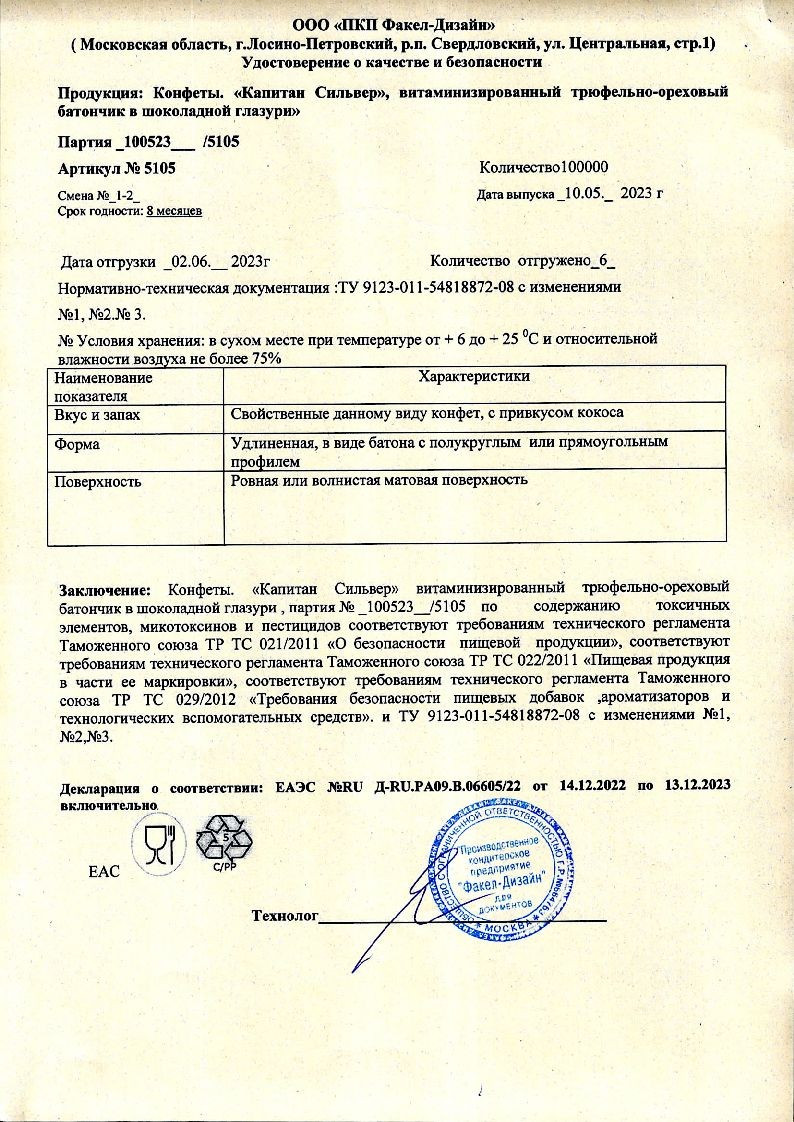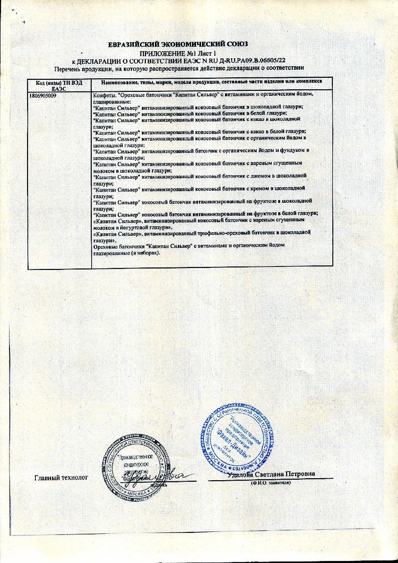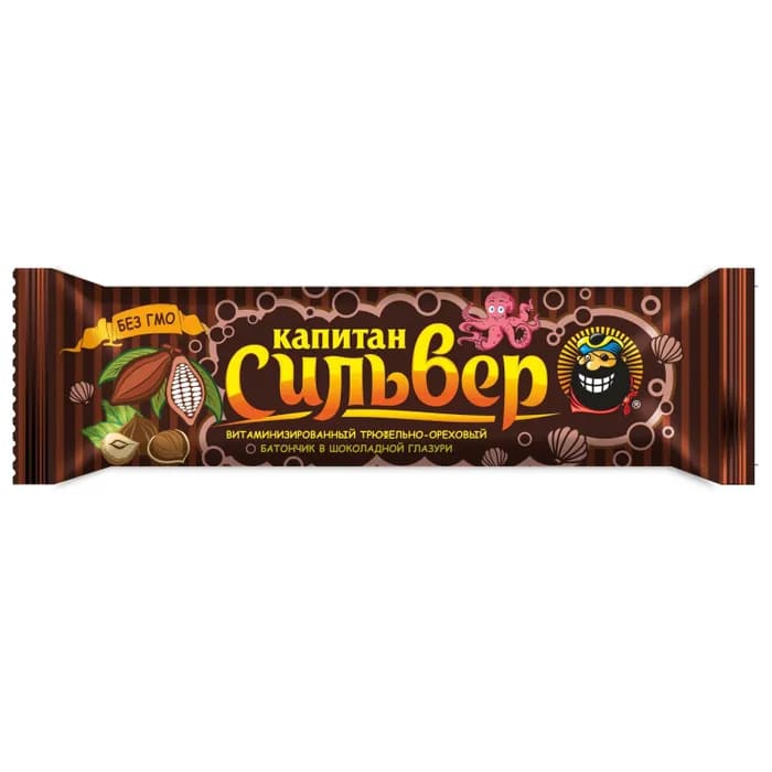 Витаминизированный трюфельно-ореховый батончик. Содержит комплекс основных витаминов и минералов С, В1, В2, В6, РР и фолиевой кислоты; железа, кальция (30% суточной нормы).