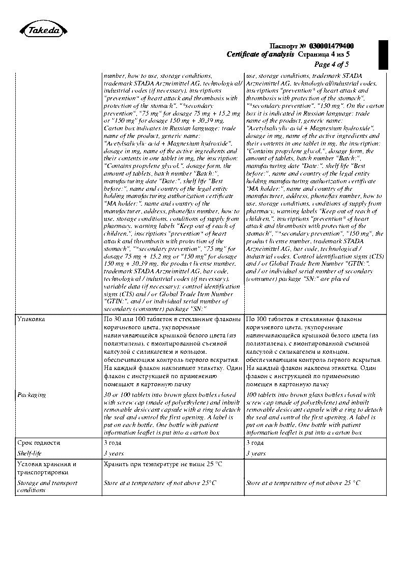 T1/2 ацетилсалициловой кислоты составляет около 15 мин, т.к. при участии ферментов она быстро гидролизуется в салициловую кислоту в кишечнике, печени и плазме крови. T1/2 салициловой кислоты - около 3 ч, но при приеме ацетилсалициловой кислоты в высоких дозах (>3 г) этот показатель может значительно увеличиваться в результате насыщения ферментных систем.