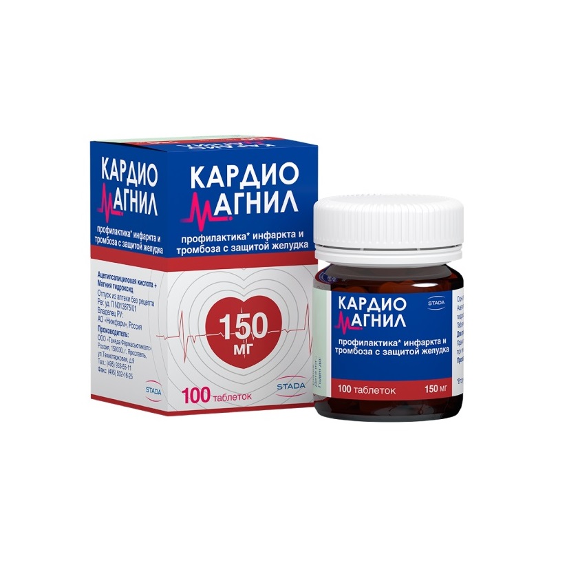 Для профилактики повторного инфаркта миокарда и тромбоза кровеносных сосудов назначают по 1 таб. Кардиомагнила, содержащего ацетилсалициловую кислоту в дозе 75-150 мг 1 раз/сут.
