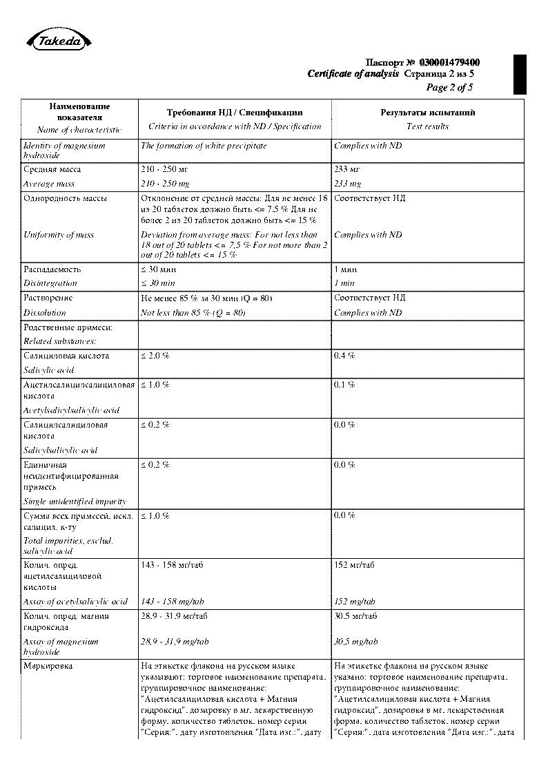 Магния гидроксид (в применяемых дозах) не влияет на биодоступность ацетилсалициловой кислоты.