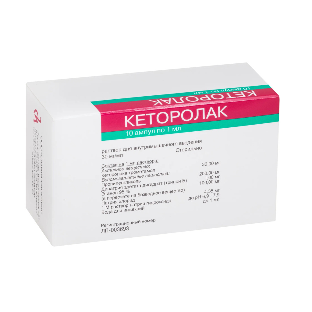Активное вещество: кеторолака трометамол (кеторолакатрометамин) - 30 мг.