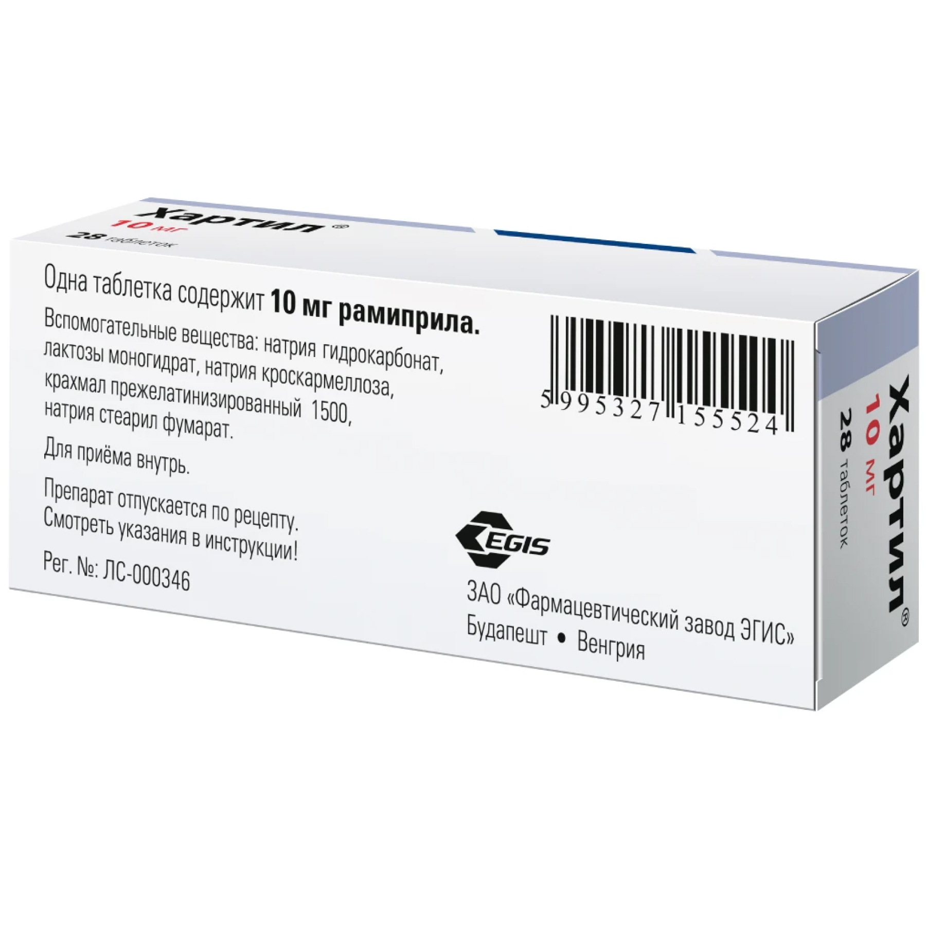 При непереносимости лактозы следует учитывать ее содержание в каждой таблетке: Хартил® 2.5 мг - 158.8 мг, Хартил® 5 мг - 96.47 мг, Хартил® 10 мг - 193.2 мг.