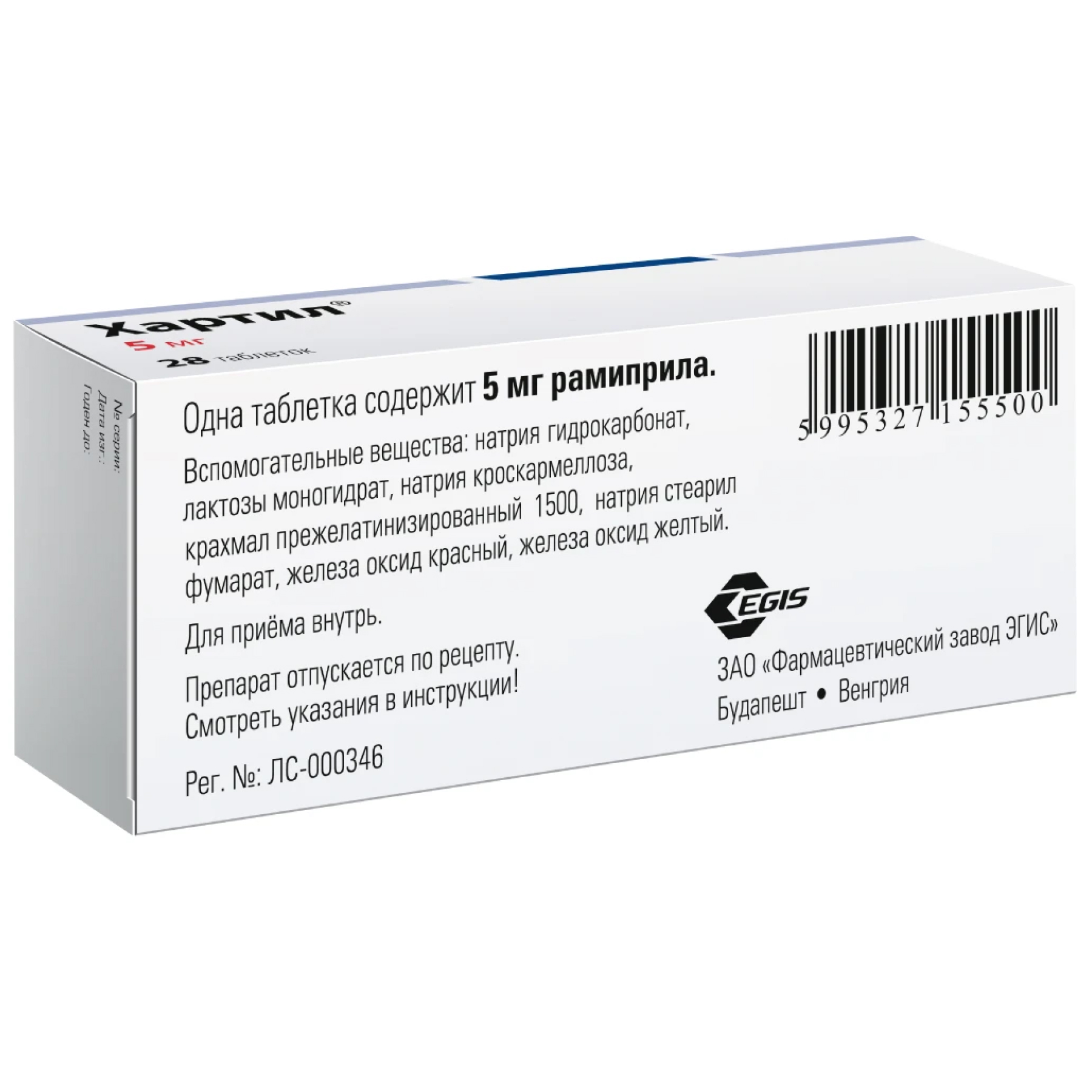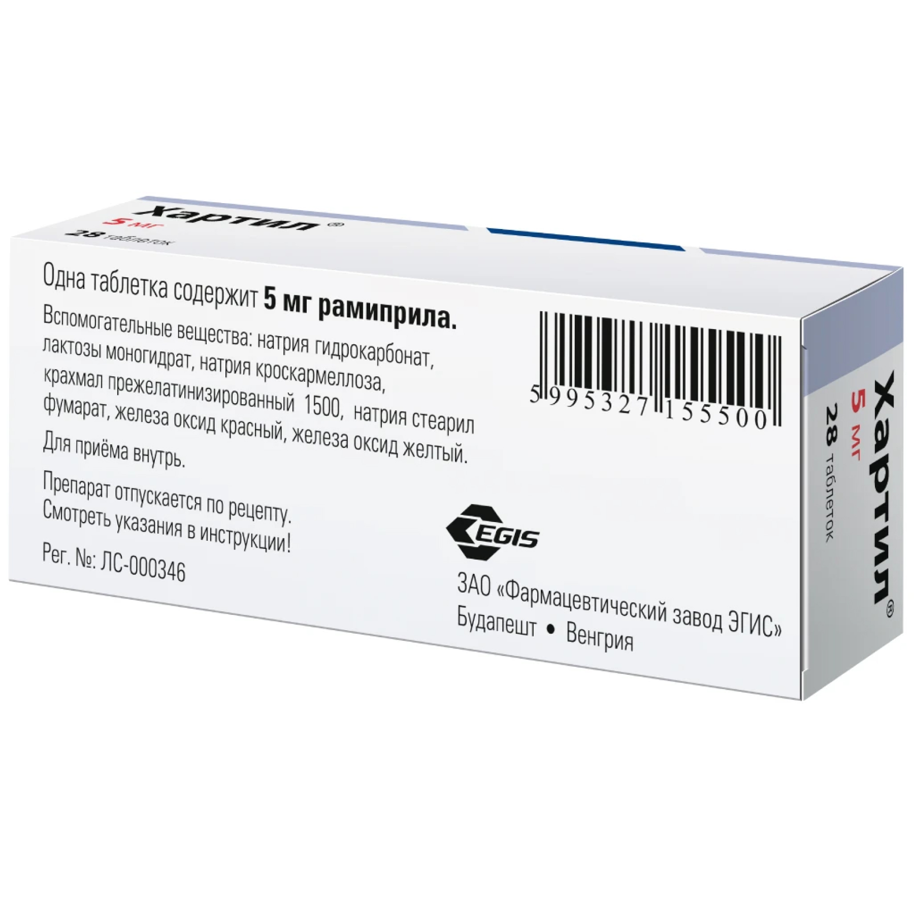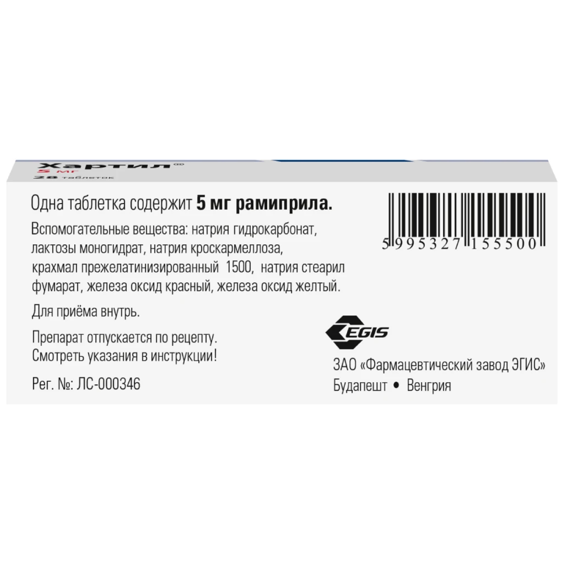 Препарат Хартил® таблетки 2.5 мг, 5 мг и 10 мг содержат лактозу.