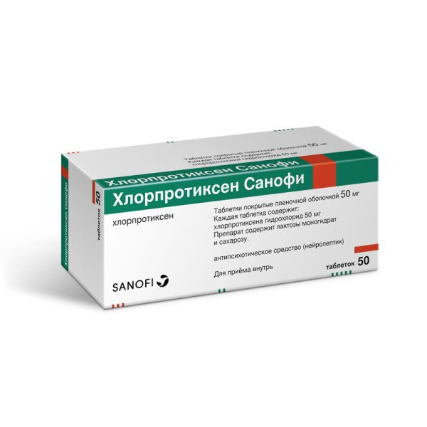 Синдром "отмены": резкое прекращение лечения хлорпротиксеном может сопровождаться синдромом "отмены". Наиболее распространенными симптомами являются тошнота, рвота, анорексия, диарея, ринорея, потливость, миалгия, парестезии, бессонница, беспокойство, тревога и возбуждение. У пациентов также могут наблюдаться вертиго, сменяющиеся ощущения тепла и холода, тремор конечностей. Симптомы обычно возникают в течение 1-4 дней после отмены и уменьшаются через 7-14 дней.