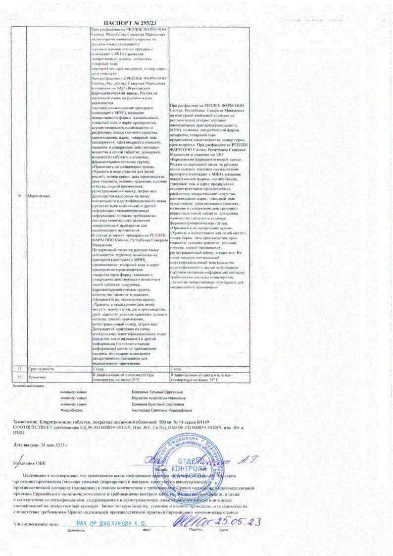 Длительный прием антибиотиков может приводить к образованию колоний с увеличенным количеством нечувствительных бактерий и грибов. При суперинфекции необходимо назначить соответствующую терапию. При применении кларитромицина сообщалось о печеночной дисфункции (повышение активности "печеночных" ферментов в крови, гепатоцеллюлярный и/или холестатический гепатит с желтухой или без). Печеночная дисфункция может быть тяжелой, но обычно является обратимой. Имеются случаи печеночной недостаточности с летальным исходом, главным образом связанные с наличием серьезных сопутствующих заболеваний и/или одновременным применением других лекарственных средств. При появлении признаков и симптомов гепатита, таких как анорексия, желтуха, потемнение мочи, зуд, болезненность живота при пальпации, необходимо немедленно прекратить терапию кларитромицином. При наличии хронических заболеваний печени необходимо проводить регулярный контроль ферментов в сыворотке крови. При лечении практически всеми антибактериальными средствами, в том числе кларитромицином, описаны случаи развития псевдомембранозного колита, тяжесть которого может варьироваться от легкой до угрожающей жизни. Антибактериальные препараты могут изменить нормальную микрофлору кишечника, что может привести к росту С. difficile. Псевдомембранозный колит, вызванный Clostridium difficile, необходимо подозревать у всех пациентов, испытывающих появление диареи после применения антибактериальных средств. После проведения курса антибиотикотерапии необходимо тщательное медицинское наблюдение за пациентом. Описывались случаи развития псевдомембранозного колита спустя 2 месяца после приема антибиотиков. Кларитромицин следует с осторожностью применять у пациентов с ишемической болезнью сердца (ИБС), тяжелой сердечной недостаточностью, гипомагниемией, выраженной брадикардией (менее 50 уд/мин), а также при одновременном применении с антиаритмическими препаратами IA класса (хинидин, прокаинамид) и III класса (дофетилид, амиодарон, соталол). При данных состояниях и при одновременном приеме кларитромицина с этими препаратами следует регулярно проводить контроль электрокардиограммы на предмет удлинения интервала QT. Возможно развитие перекрестной резистентности к кларитромицину и другим антибиотикам группы макролидов, а также линкомицину и клиндамицину. Учитывая растущую резистентность Streptococcus pneumoniae к макролидам, важно проводить тестирование чувствительности при назначении кларитромицина пациентам с внебольничной пневмонией. При госпитальной пневмонии кларитромицин следует применять в комбинации с соответствующими антибактриальными препаратами. Инфекции кожи и мягких тканей легкой и средней степени тяжести чаще всего вызваны Staphylococcus aureus и Streptococcus pyogenes. При этом оба возбудителя могут быть устойчивы к макролидам. Поэтому важно проводить тест на чувствительность. Макролиды можно применять при инфекциях, вызванных Corynebacterium minutissimum, заболеваниях acne vulgaris и рожа, а так же в тех ситуациях, когда нельзя применять пенициллин. В случае появления острых реакций гиперчувствительности, таких как анафилактическая реакция, синдром Стивенса-Джонсона, токсический эпидермальный некролиз, лекарственная сыпь с эозинофилией и системной симптоматикой (DRESS-синдром) необходимо сразу же прекра