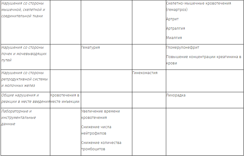 Кровотечение является наиболее частой реакцией, о которой сообщалось как в клинических исследованиях, так и при пострегистрационном применении. Чаще всего сообщалось о кровотечениях в течение первого месяца лечения.