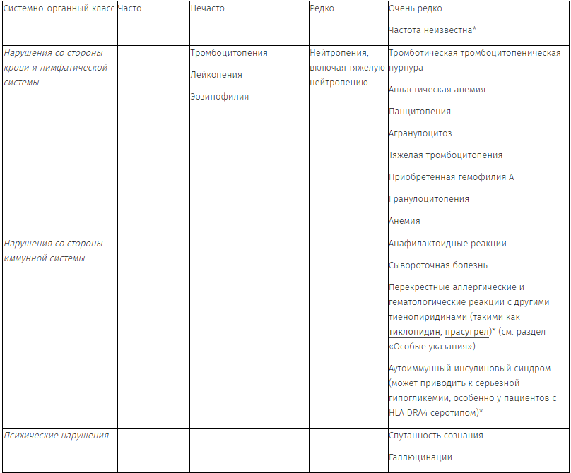 В исследованиях CURE и CLARITY наблюдалось сопоставимое количество пациентов с тромбоцитопенией или нейтропенией в обеих группах лечения.