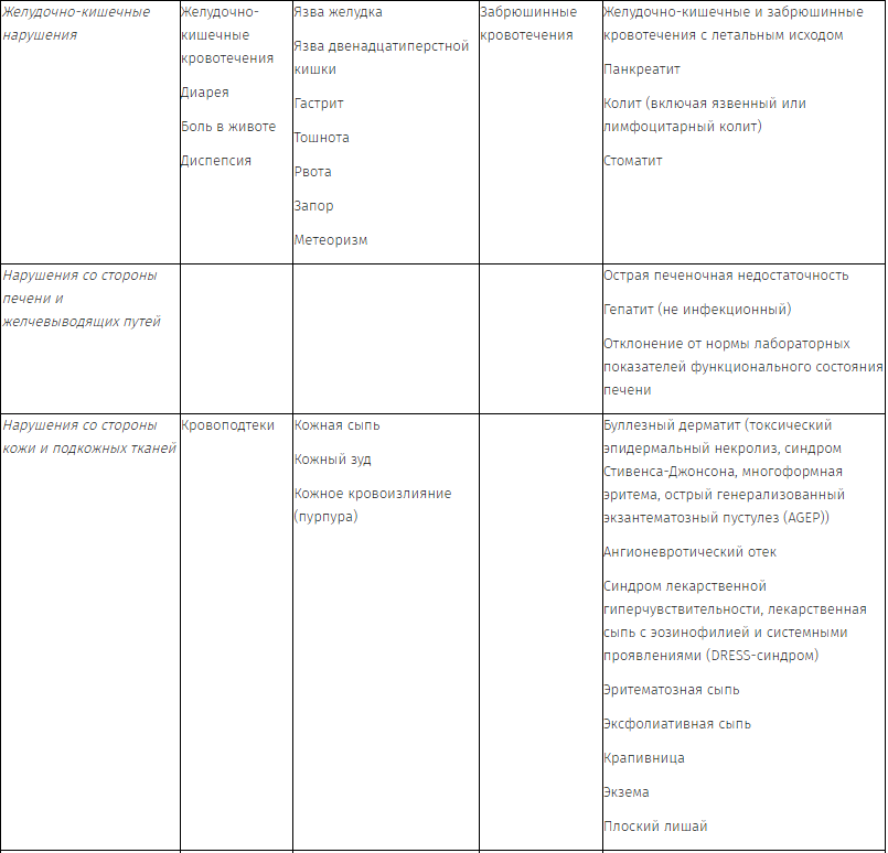 Нежелательные реакции, которые возникли во время клинических исследований или о которых сообщалось спонтанно, представлены в таблице ниже. Их частота определяется с использованием следующих условных обозначений: очень часто (≥ 1/10); часто (≥ 1/100 до < 1/10); нечасто (≥ 1/1000 до < 1/100); редко (≥ 1/10000 до < 1/1000); очень редко (< 1/10000); частота неизвестна (не может быть оценена на основе имеющихся данных). В каждом системно-органном классе нежелательные реакции представлены в порядке убывания серьезности.