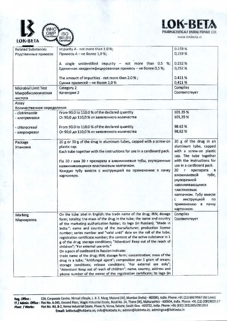 Амфотерицин В, нистатин, натамицин снижают эффективность клотримазола при одновременном применении. При применении крема отрицательные взаимодействия с другими средствами не известны и их не следует ожидать, т.к. резорбционная способность клотримазола очень низкая.