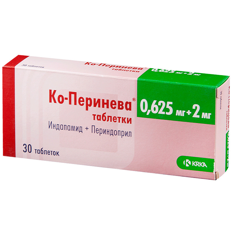 Начальная доза – по 1 таблетке препарата Ко-Перинева® (0,625 мг + 2 мг) 1 раз в сутки. Если через 1 месяц приема препарата не удается добиться адекватного контроля АД, дозу препарата следует увеличить до 1 таблетки препарата Ко-Перинева® (1,25 мг + 4 мг) 1 раз в сутки.