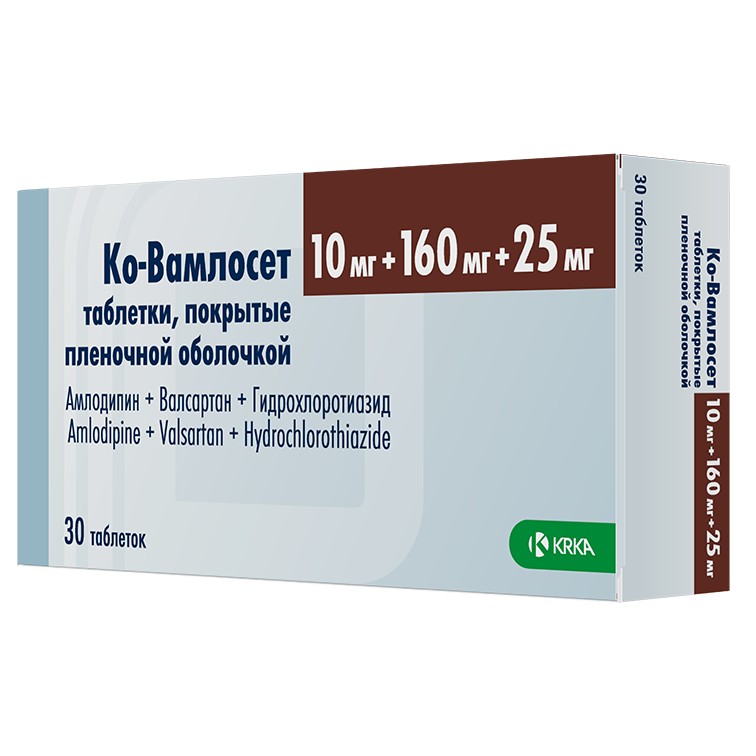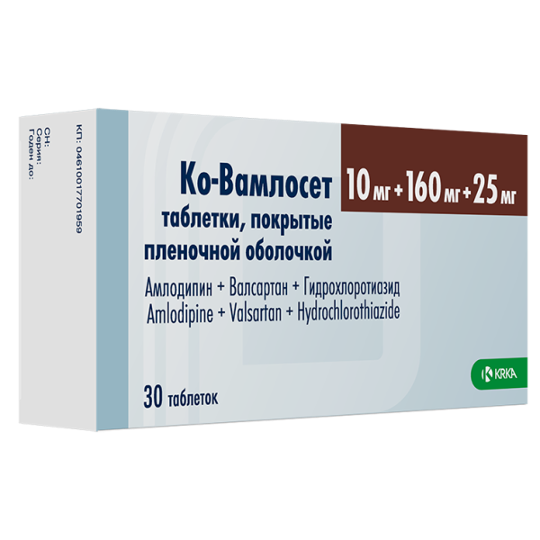 Для удобства пациенты, получающие монотерапию амлодипином, валсартаном и ГХТЗ в отдельных таблетках, могут быть переведены на терапию препаратом Ко-Вамлосет, содержащим те же дозы активных компонентов. При недостаточном контроле АД на фоне двойной комбинированной терапии (валсартан + ГХТЗ, амлодипин + валсартан и амлодипин + ГХТЗ) пациенты могут быть переведены на тройное комбинированное лечение препаратом Ко-Вамлосет в соответствующих дозах.