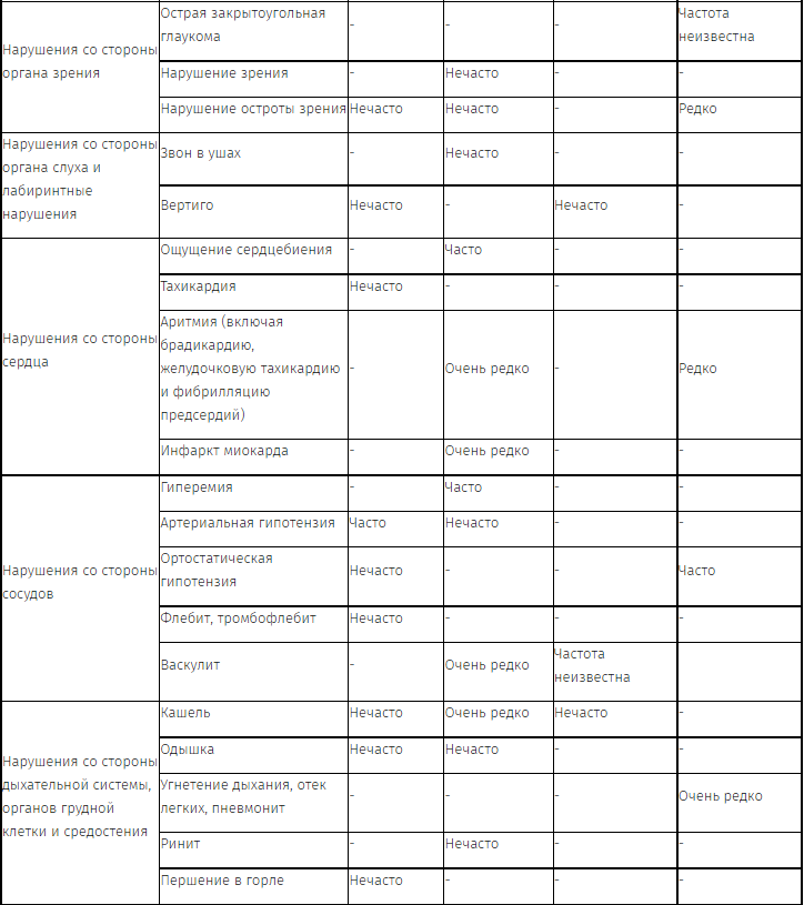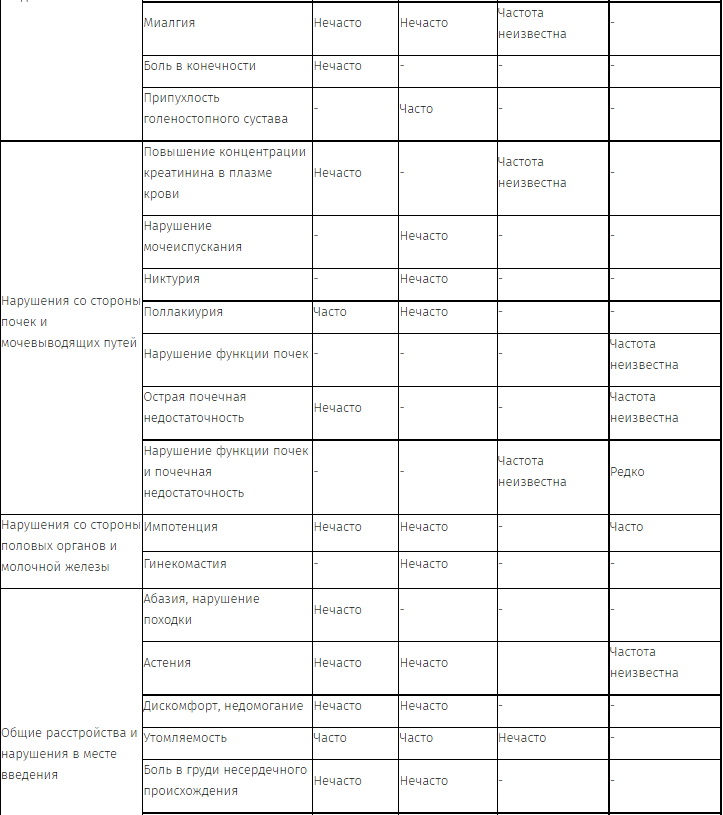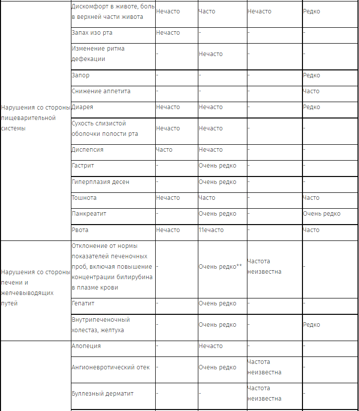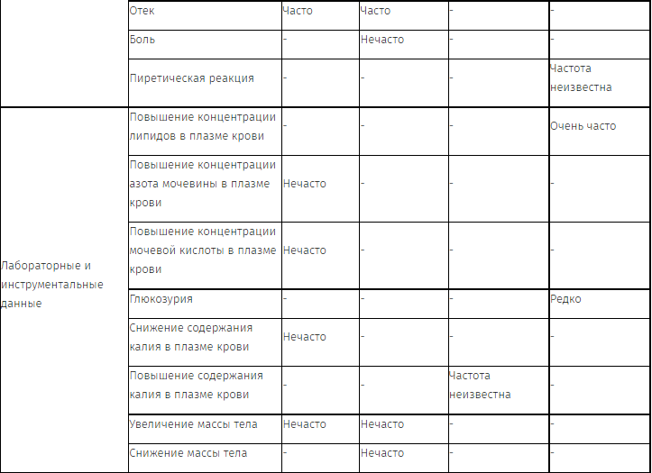 Перечень нежелательных реакций в форме таблицы