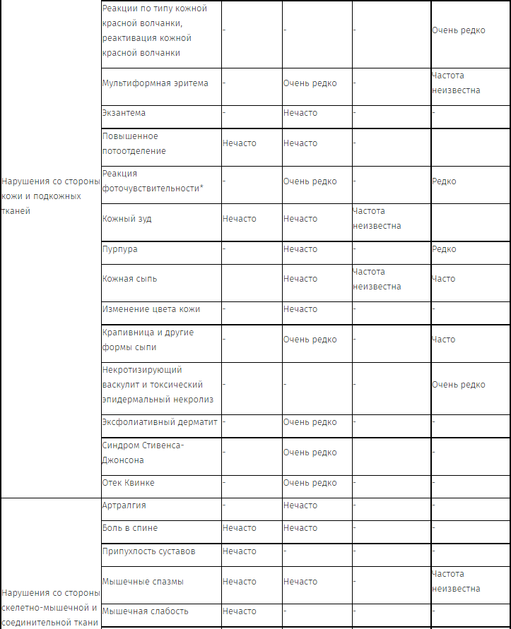 * См. раздел "Особые указания. Реакция фоточувствительности".