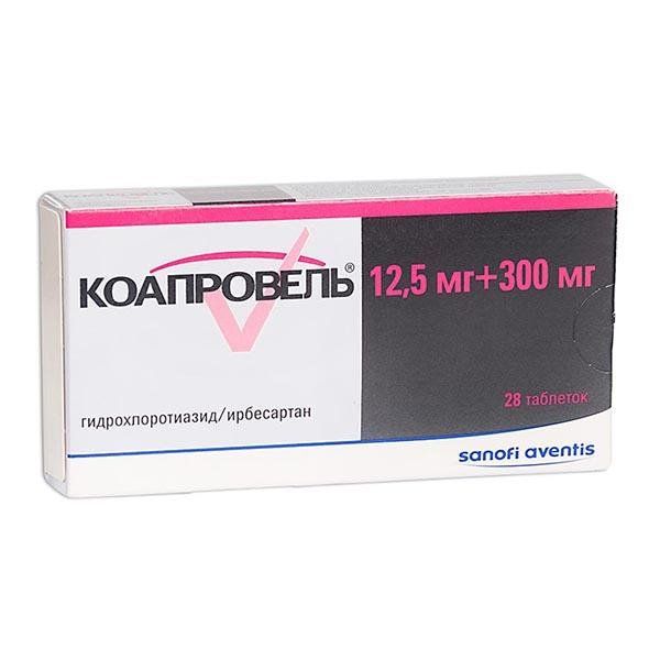 Коапровель® назначают пациентам, у которых АД недостаточно контролируется ирбесартаном или гидрохлоротиазидом в монотерапии.