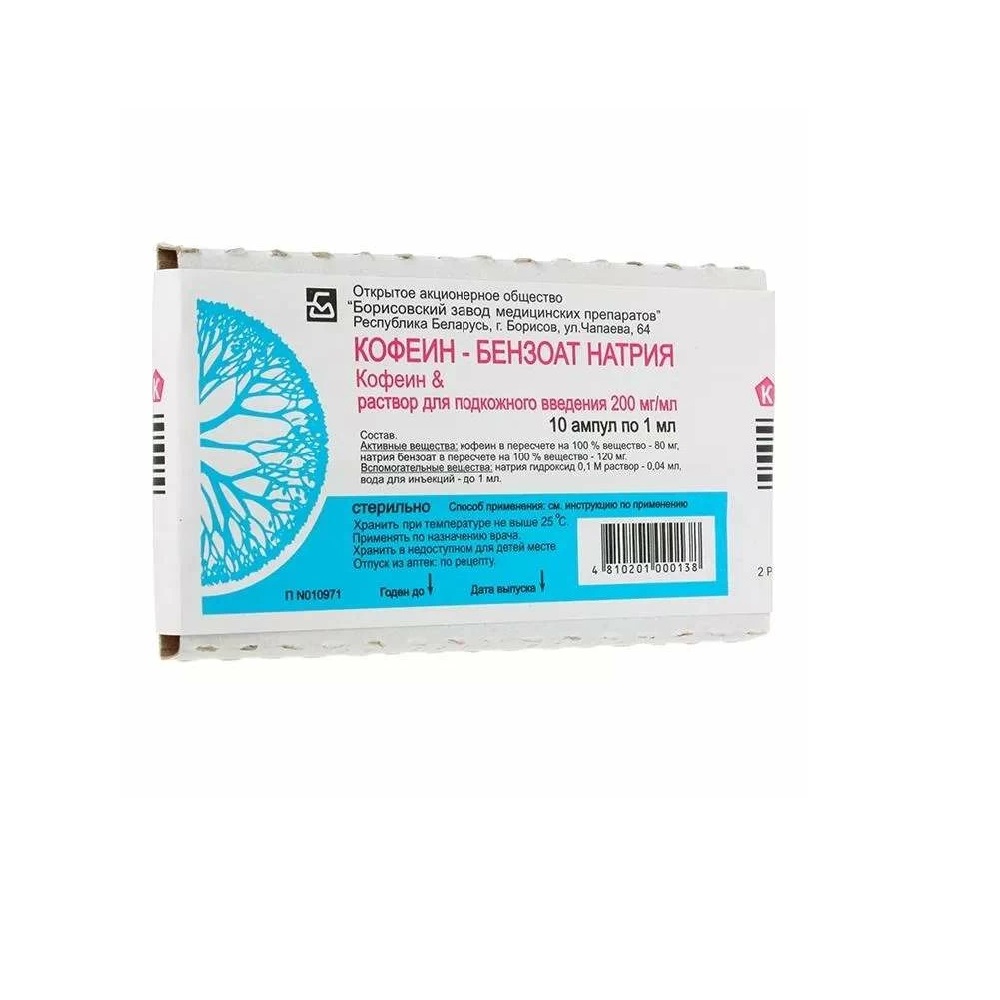 Кофеин — метилксантин, оказывающий психостимулирующий и аналептический эффект. Конкурентно блокирует центральные и периферические A1 и А2 аденозиновые рецепторы. Тормозит активность фосфодиэстеразы в центральной нервной системе, сердце, гладкомышечных органах, скелетных мышцах, жировой ткани, способствует накоплению в них циклического аденозинмонофосфата и циклического гуанозинмонофосфата (данный эффект наблюдается при применении только высоких доз кофеина). Стимулирует центры продолговатого мозга (дыхательный и сосудодвигательный), а также центр n.vagus, оказывает прямое возбуждающее влияние на кору головного мозга. В высоких дозах облегчает межнейрональную проводимость в спинном мозге, усиливая спинномозговые рефлексы. Повышает умственную и физическую работоспособность, стимулирует психическую деятельность, двигательную активность, укорачивает время реакций, временно уменьшает утомление и сонливость. В малых дозах преобладает эффект стимуляции, а в больших эффект угнетения нервной системы. Учащает и углубляет дыхание, обычно оказывает положительный ино-, хроно-, батмо- и дромотропный эффект (поскольку влияние на сердечно-сосудистую систему складывается из прямого стимулирующего действия на миокард и одновременного возбуждающего влияния на центры п. vagus, результирующий эффект зависит от преобладания того или иного действия). Стимулирует сосудодвигательный центр и оказывает непосредственное релаксирующее действие на сосудистую стенку, что приводит к расширению сосудов сердца, скелетных мышц и почек, при этом тонус церебральных артерий повышается (вызывает сужение сосудов головного мозга, что сопровождается снижением мозгового кровотока и давления кислорода в головном мозге). Артериальное давление изменяется под действием сосудистых и сердечных механизмов влияния кофеина: при нормальном исходном артериальном давлении кофеин не изменяет или слегка повышает его, при артериальной гипотензии нормализует его.