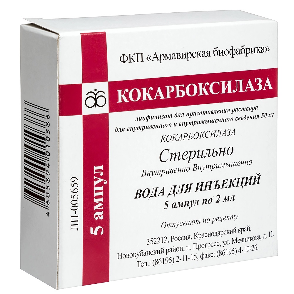 Действующее вещество: кокарбоксилазы гидрохлорид - 50,0 мг;