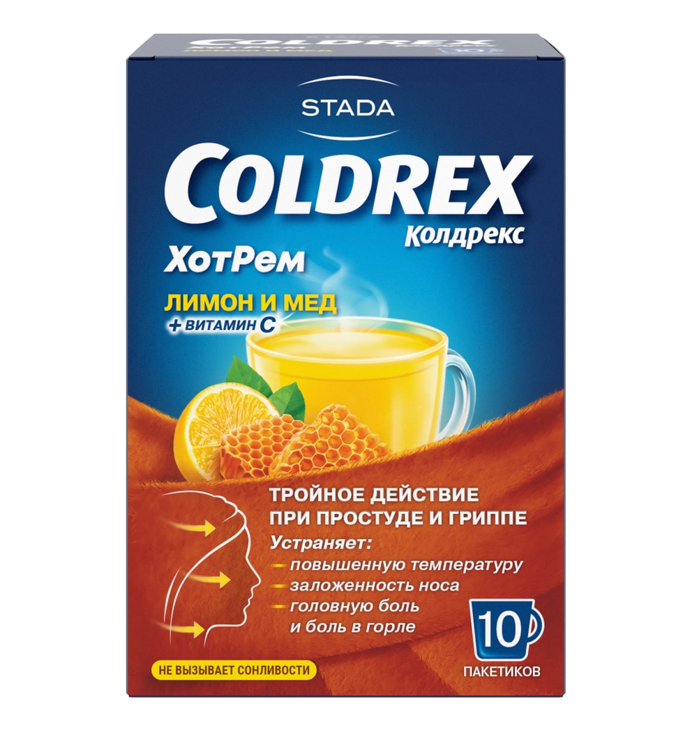 Пациентам, соблюдающим диету с пониженным содержанием натрия, следует учитывать, что 1 пакетик препарата Колдрекс ХотРем содержит 0.12 г натрия.