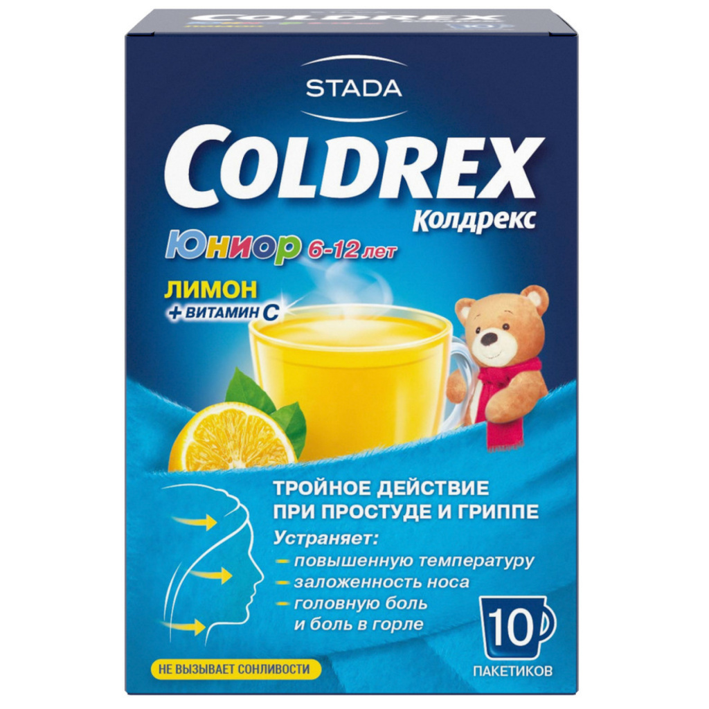 Минимальный интервал между приемами препарата Колдрекс Юниор должен составлять не менее 4 ч.