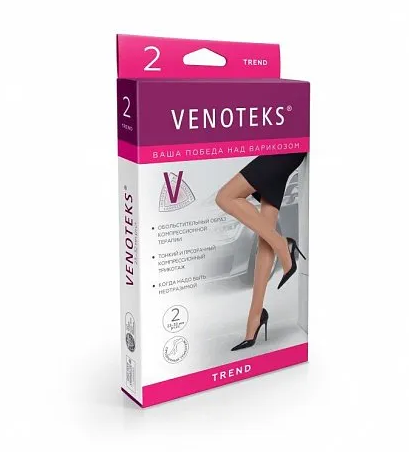 VENOTEKS TREND – эффективно снимают дневные отеки при статических нагрузках, уменьшают ночные судороги в ногах (венозного происхождения) и препятствуют дальнейшему прогрессированию варикозной болезни и развитию её осложнений.