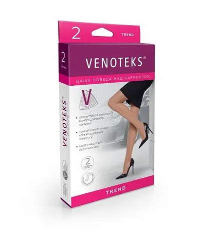 VENOTEKS TREND – эффективно снимают дневные отеки при статических нагрузках, уменьшают ночные судороги в ногах (венозного происхождения) и препятствуют дальнейшему прогрессированию  варикозной болезни и развитию её осложнений.