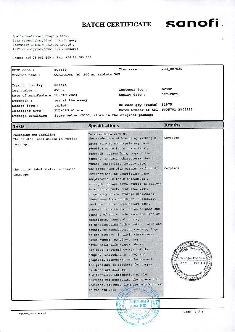 Перед хирургическим вмешательством следует поставить в известность врача-анестезиолога о том, что пациент принимает Кордарон®.