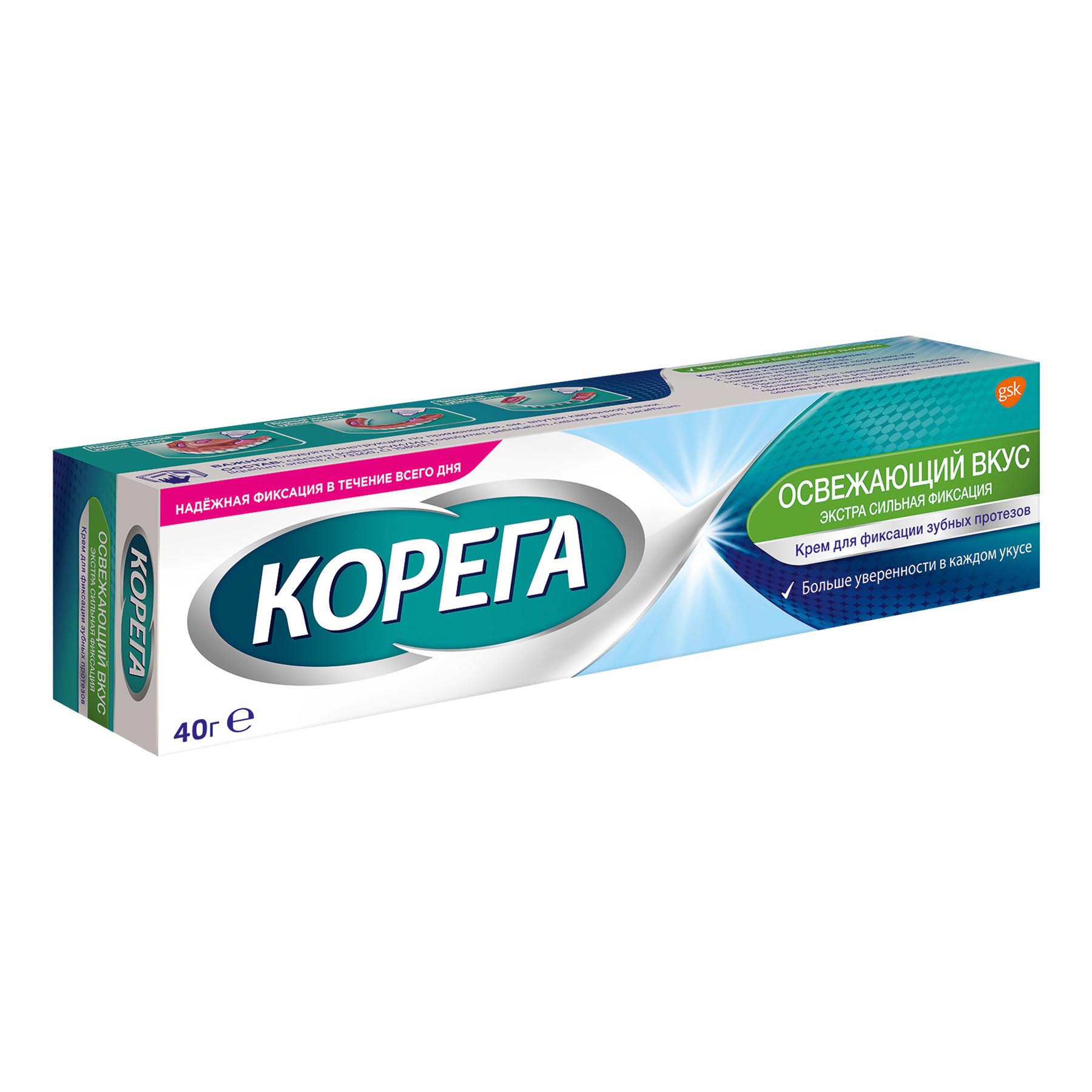 Крем Корега обеспечивает надежную фиксацию в течение всего дня, предотвращает смещение протеза в полости рта и попадание частичек пищи даже под хорошо припасованный протез, позволяя вам говорить, есть и улыбаться уверенно!