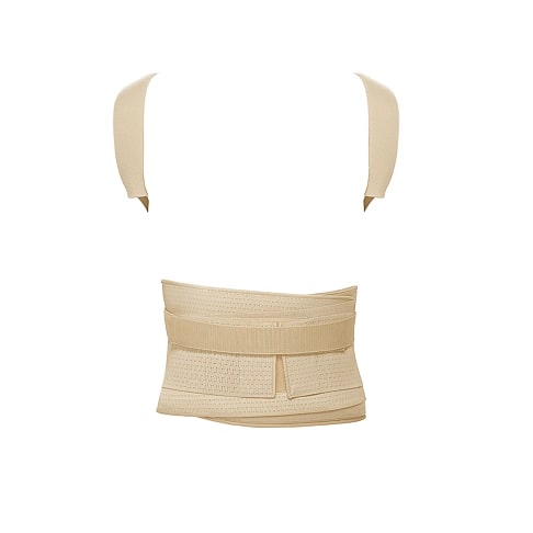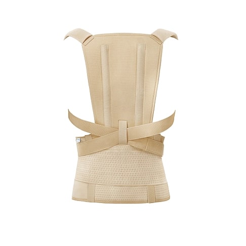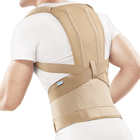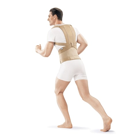 - корректор усиленный, его особенностью является наличие эластичного пояса, дополнительно обеспечивающего уравновешивание тонуса мышц, участвующих в удержании положения тела. Наличие пояса позволяет дополнительно фиксировать и разгружать поясничный отдел позвоночника при наличии болей;