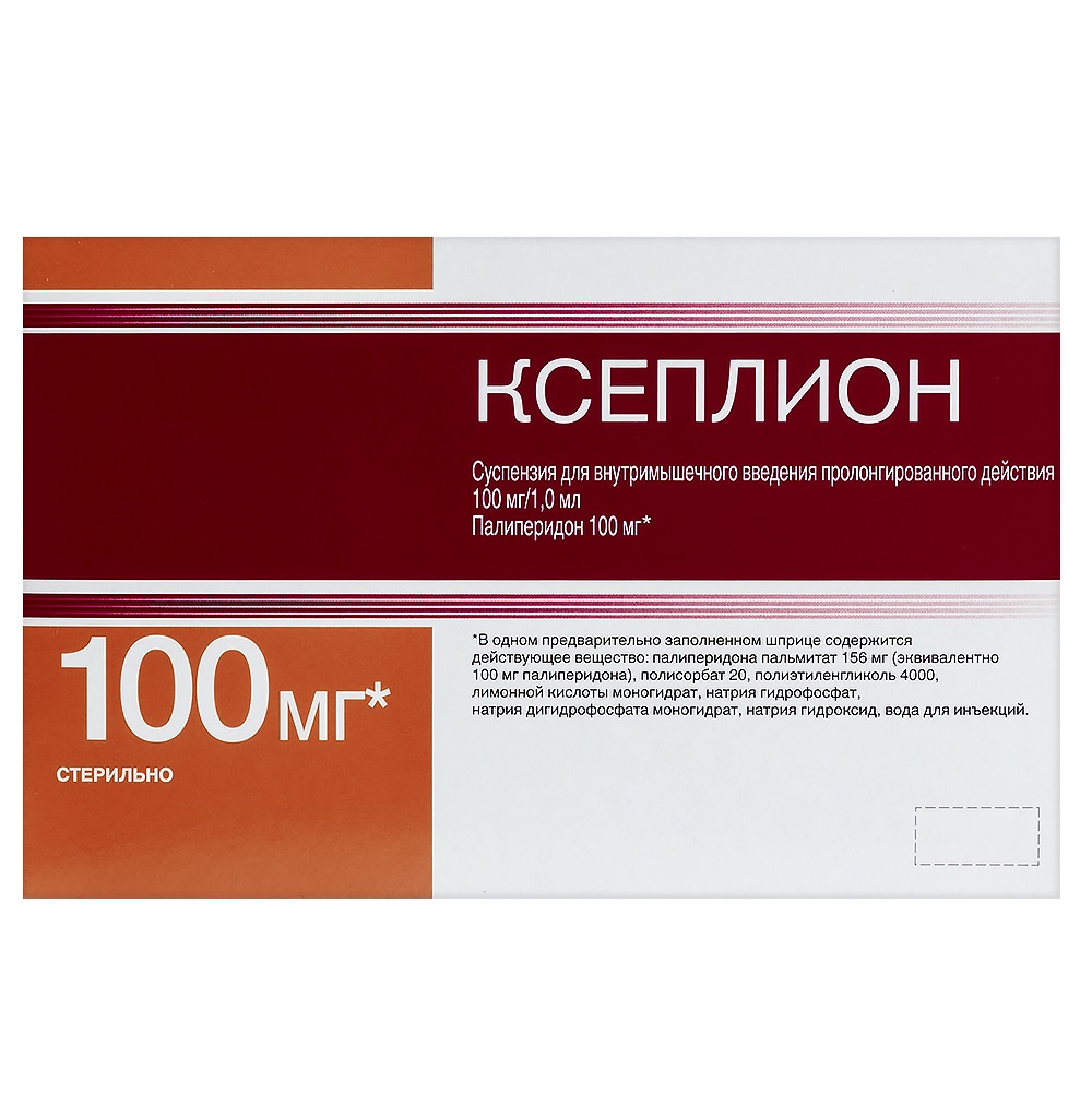 Активное вещество: 100 мг палиперидона в 1 мл суспензии (эквивалентно 156 мг палиперидона пальмитата).