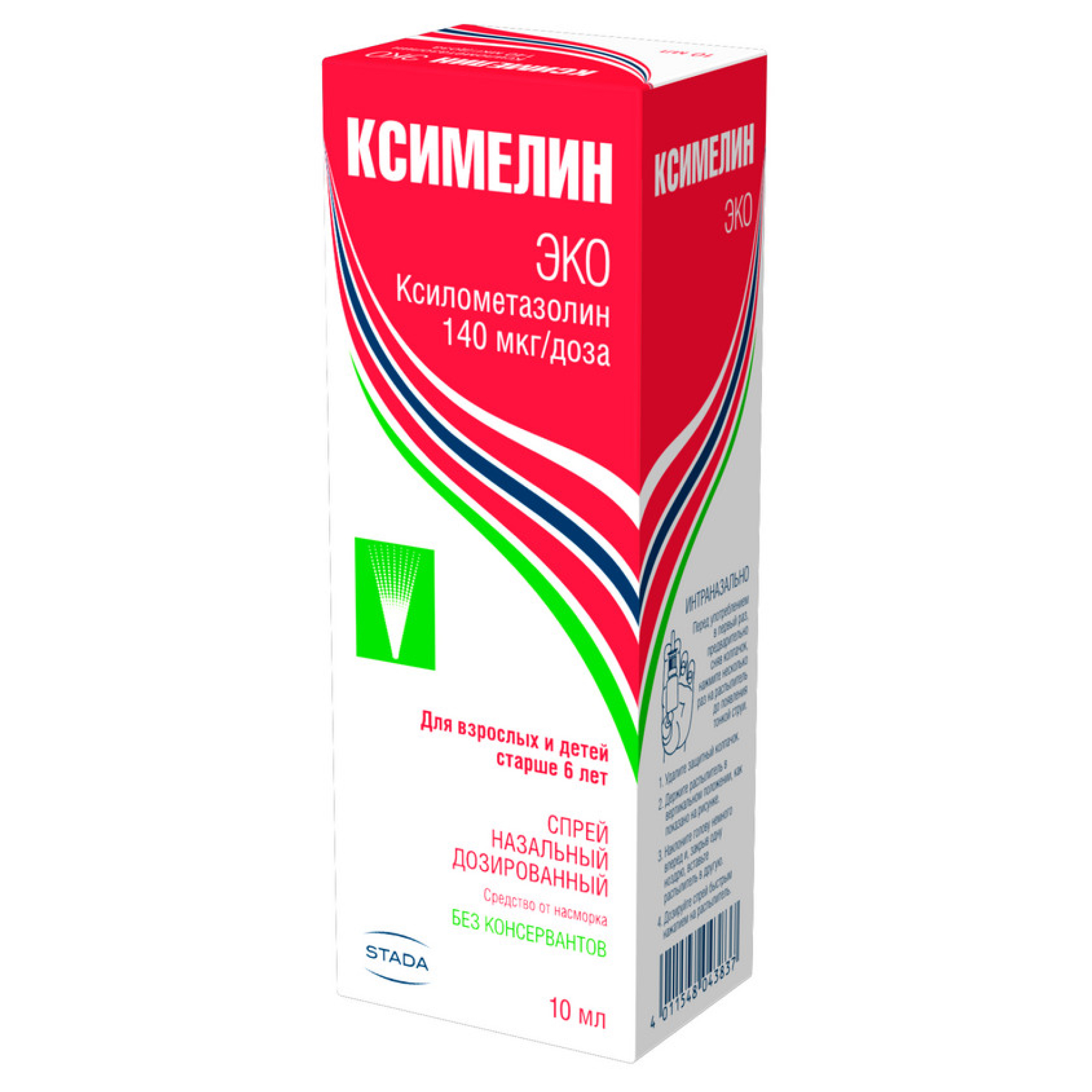 Одно впрыскивание препарата Ксимелин Эко 35 мкг/доза содержит около 35 мкг ксилометазол ина гидрохлорида; одно впрыскивание препарата Ксимелин Эко 140 мкг/доза содержит около 140 мкг ксилометазолина гидрохлорида.