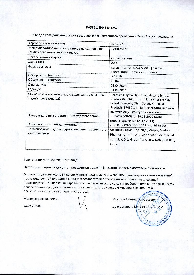 Ксонеф® содержит консервант бензалкония хлорид, который может осаждаться на мягких контактных линзах и оказывать токсическое действие на ткани глаза. Поэтому пациентам, носящим контактные линзы, следует снять их перед применением капель и установить обратно не ранее чем через 20 мин после закапывания.