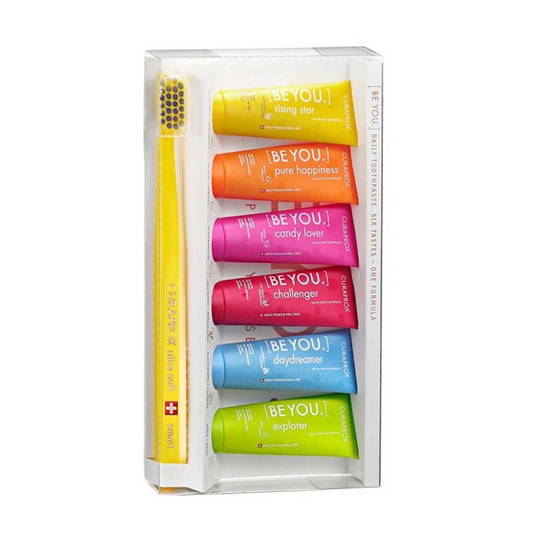 Набор CURAPROX Be you set, состоящий из шести семейных зубных паст Be you (10 мл) и детской зубной щётки CURAPROX smart.