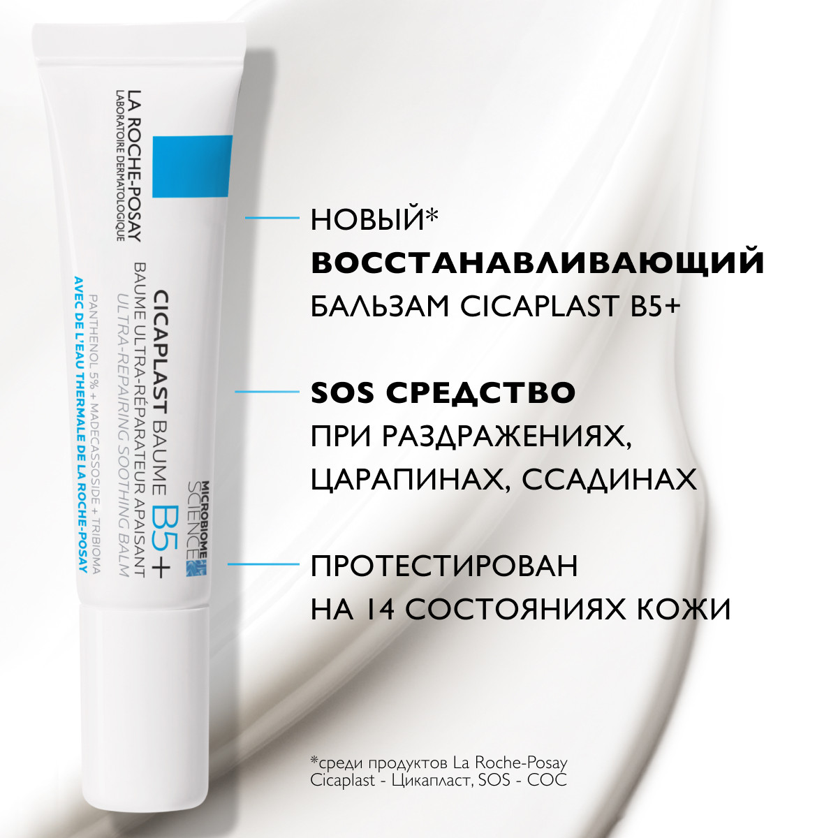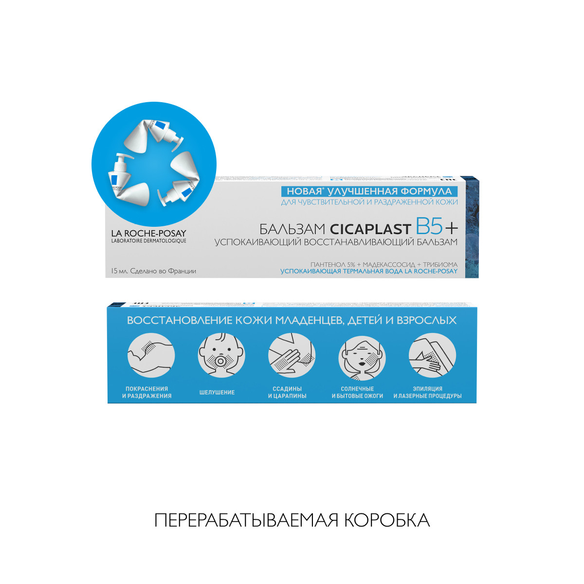 Новая улучшенная* формула бальзама Cicaplast B5+ вдохновлена наукой о микробиоме и включает Трибиому – уникальный комплекс пребиотиков из молочного фермента, сахаров и растительного экстракта, Пантенол 5% и Мадекассосид для моментального успокоения кожи и восстановления ее барьера, а также комплекс с признанными антибактериальными свойствами Цинк+Марганец.