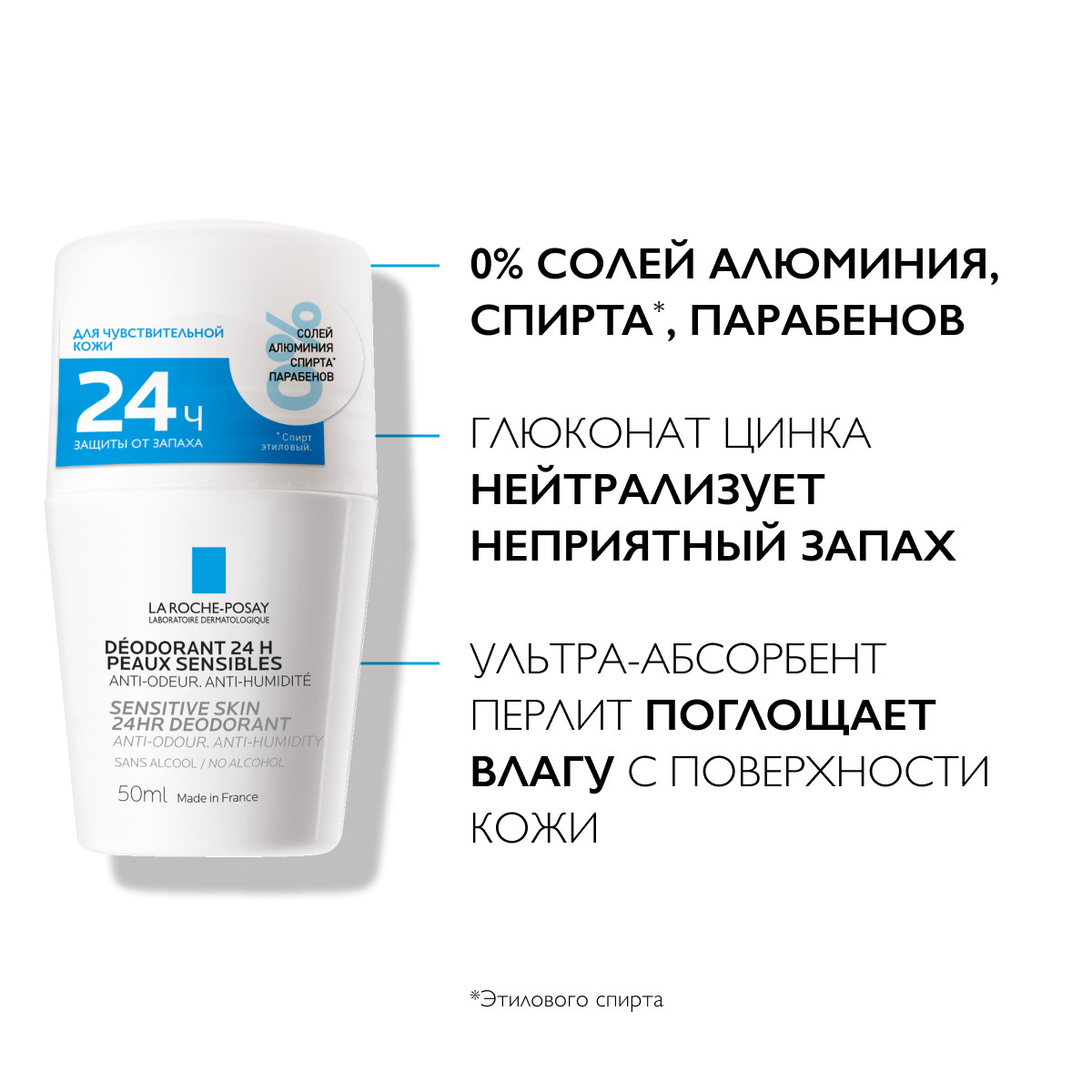 Физиологический дезодорант La Roche-Posay в виде ролика подходит для чувствительной кожи и обеспечивает защиту от неприятного запаха и избыточного потоотделения. Обогащенная формула способствует поглощению влаги с поверхности кожи и предотвращению запаха пота. Компактный ролик удобно брать с собой.