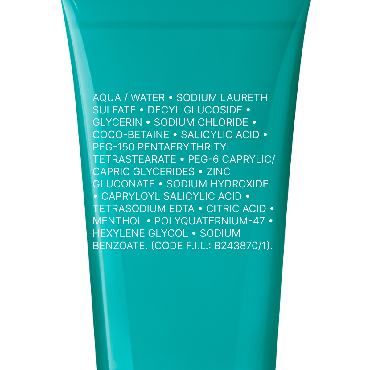 aqua/water, sodium laureth sulfate, decyl glucoside, glycerin, sodium chloride, coco-betaine, salicylic acid, peg-150 pentaerythrityl tetrastearate, peg-6 caprylic/capric glycerides, zinc gluconate, sodium hydroxide, capryloyl salicylic acid, tetrasodium edta, citric acid, menthol, polyquaternium-47, hexylene glycol, sodium benzoate. (code f.i.l.: b243870/1).