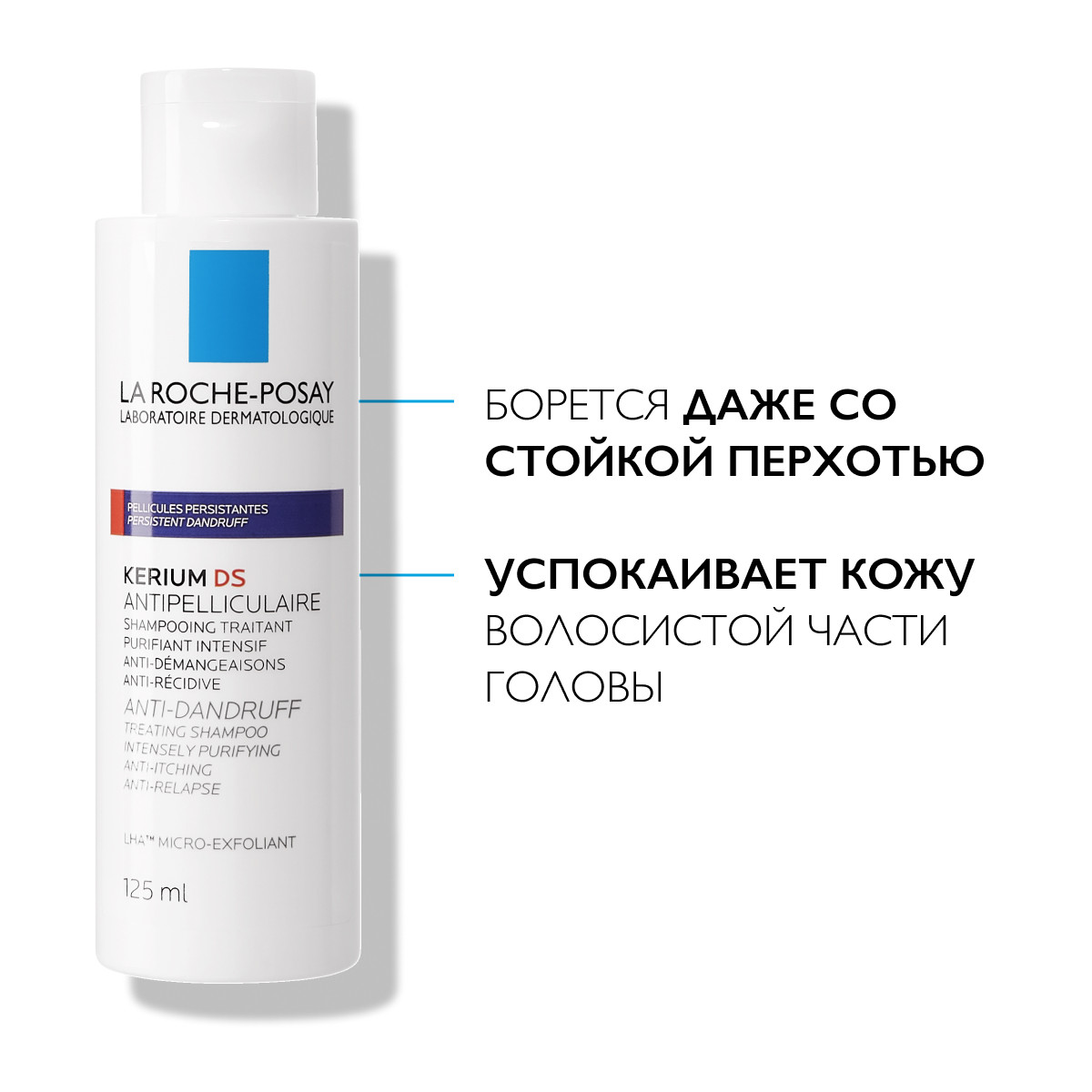 Интенсивный шампунь против перхоти с микроотшелушивающим эффектом Кериум DS устраняет перхоть, тщательно очищая и успокаивая кожу волосистой части головы, устраняя зуд.