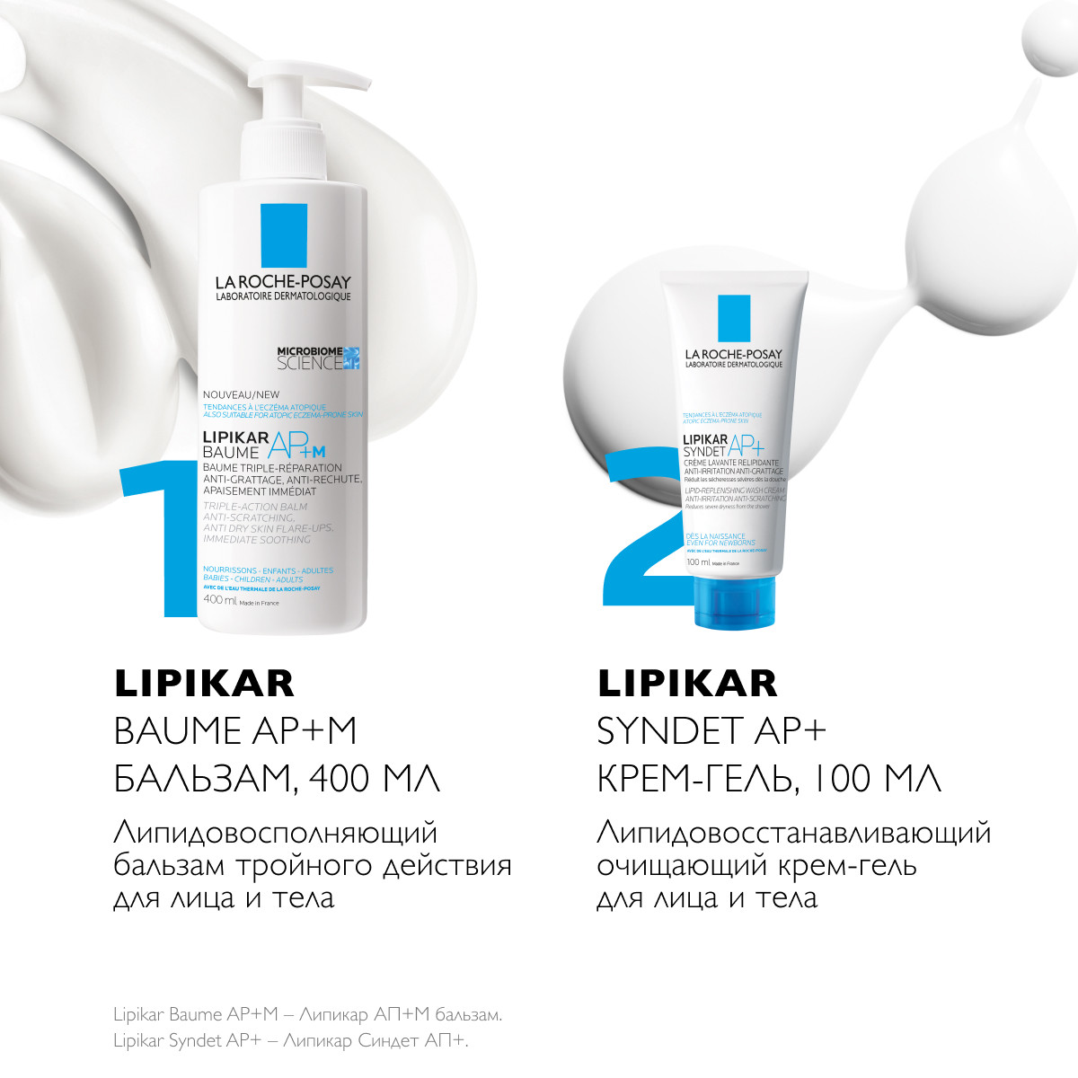 LIPIKAR AP+M BAUME:AQUA/WATER, BUTYROSPERMUM PARKII BUTTER/SHEA BUTTER, GLYCERIN, DIMETHICONE, NIACINAMIDE, PARAFFINUM LIQUIDUM/MINERAL OIL, CETEARYL ALCOHOL, BRASSICA CAMPESTRIS OLEIFERA OIL/RAPESEED SEED OIL, AMMONIUM POLYACRYLDIMETHYLTAURAMIDE/AMMONIUM POLYACRYLOYLDIMETHYL TAURATE, PEG-100 STEARATE, GLYCERYL STEARATE, PEG-20 METHYL GLUCOSE SESQUISTEARATE, CERA MICROCRISTALLINA/MICROCRYSTALLINE WAX, PARAFFIN, SORBITAN TRISTEARATE, DIMETHICONOL, MANNOSE, DISODIUM EDTA, CAPRYLOYL GLYCINE, VITREOSCILLA FERMENT, XANTHAN GUM, PENTAERYTHRITYL TETRA-DI-T-BUTYL HYDROXYHYDROCINNAMATE, SODIUM BENZOATE;SYNDET AP+: AQUA/WATER GLYCERIN SODIUM LAURETH SULFATE PEG-200 HYDROGENATED GLYCERYL PALMATE COCO-BETAINE POLYSORBATE 20 PEG-7 GLYCERYL COCOATE NIACINAMIDE ACRYLATES COPOLYMER BUTYROSPERMUM PARKII BUTTER/SHEA BUTTER CITRIC ACID COCAMIDE MEA DISODIUM EDTA MANNOSE POLYQUATERNIUM-11 SODIUM BENZOATE SODIUM CHLORIDE SODIUM HYDROXIDE STYRENE/ACRYLATES COPOLYMER VITEOSCILLA FERMENT.