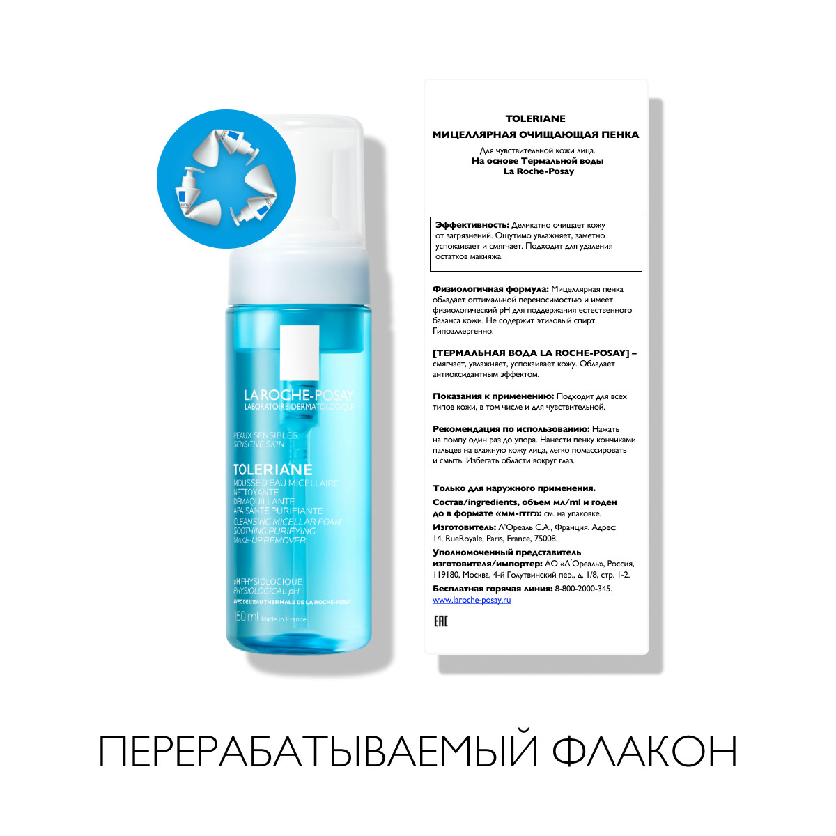 Мицеллярная очищающая пенка эффективно и мягко очищает кожу, подходит для снятия макияжа. Имеет физиологический pH для поддержания естественного баланса кожи. Заметно успокаивает, смягчает и увлажняет кожу В состав входят специально отобранные очищающие компоненты, обеспечивающие высокую переносимость средства. Средство создано на основе Термальной воды La Roche-Posay. Подходит для всех типов кожи, в том числе для чувствительной. Не содержит этиловый спирт. Гипоаллергенно.