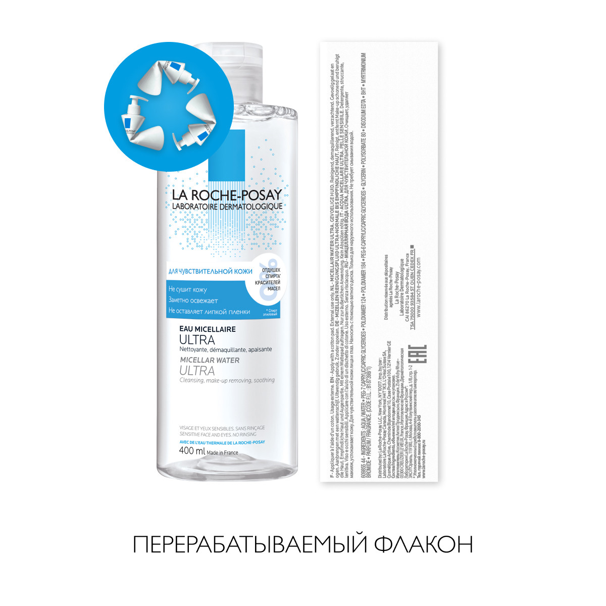 Новая архитектура формулы мицеллярной воды, разработанная Дерматологической лабораторией La Roche-Posay, позволила соединить силу мицелл и глицерина для достижения ультра эффективности и оптимальной переносимости. Новая мицеллярная вода равномерно распределяется по поверхности кожи, не вызывает трения и повреждения защитного барьера кожи. Благодаря новой формуле средства происходит прочный захват и удержание всех частиц макияжа и микро-загрязнений. Содержит термальную воду La Roche-Posay.
