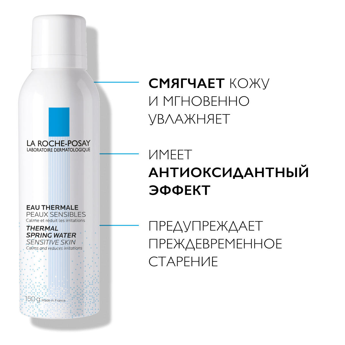 ТЕРМАЛЬНАЯ ВОДА LA ROCHE-POSAY – дерматологический активный компонент. Смягчает, увлажняет кожу. Нейтрализует действие свободных радикалов.