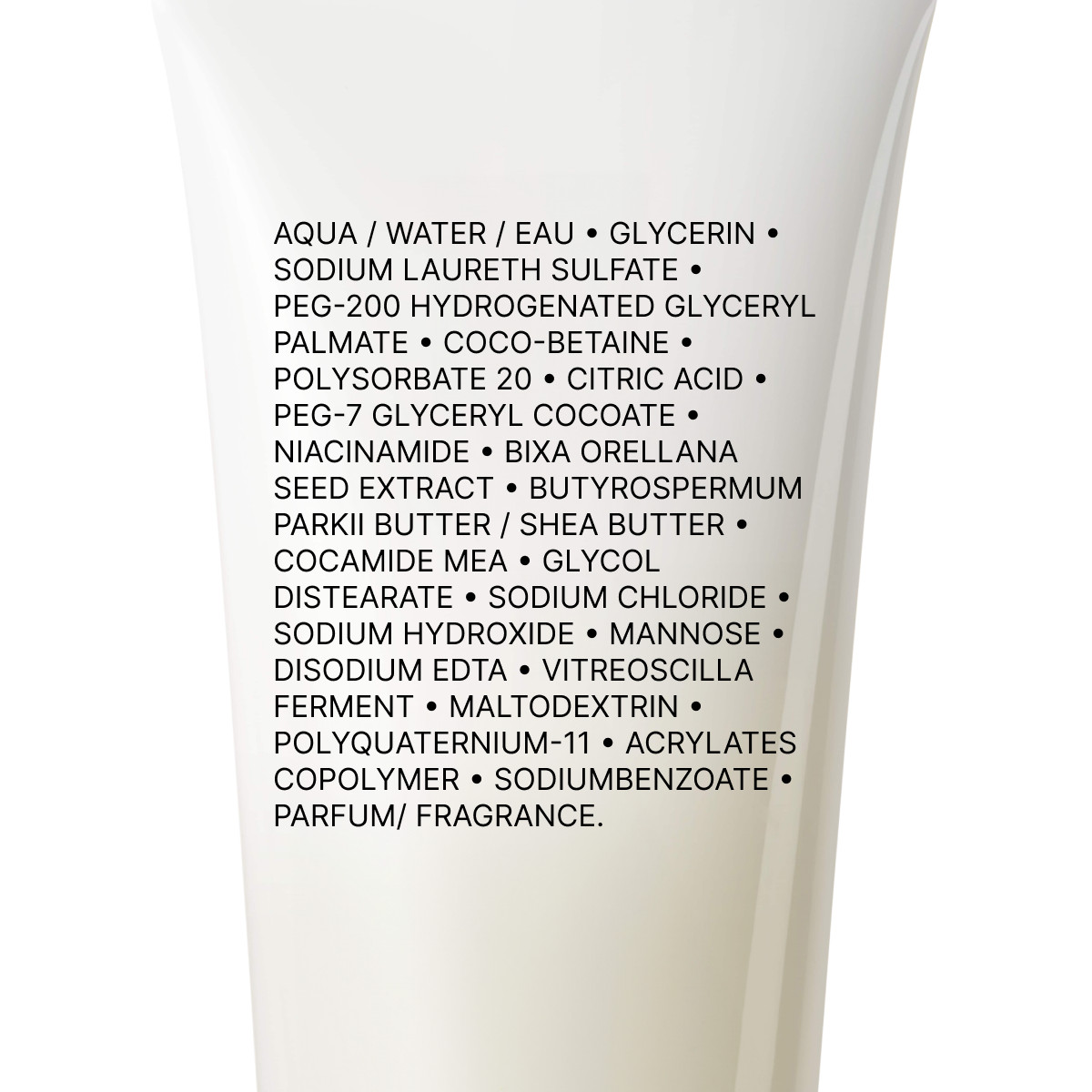 Aqua / water / eau, glycerin, sodium, laureth sulfate, peg-200 hydrogenated glyceryl palmate, coco-betaine, polysorbate 20, citric acid, peg-7 glyceryl cocoate, niacinamide, bixa orellana seed extract, butyrospermum parkii butter / shea butter, cocamide mea, glycol distearate, sodium chloride, sodium hydroxide, mannose, disodium edta, vitreoscilla ferment, maltodextrin, polyquaternium-11, acrylates copolymer, sodium benzoate, parfum / fragrance. (code f.i.l.: b275139/1).