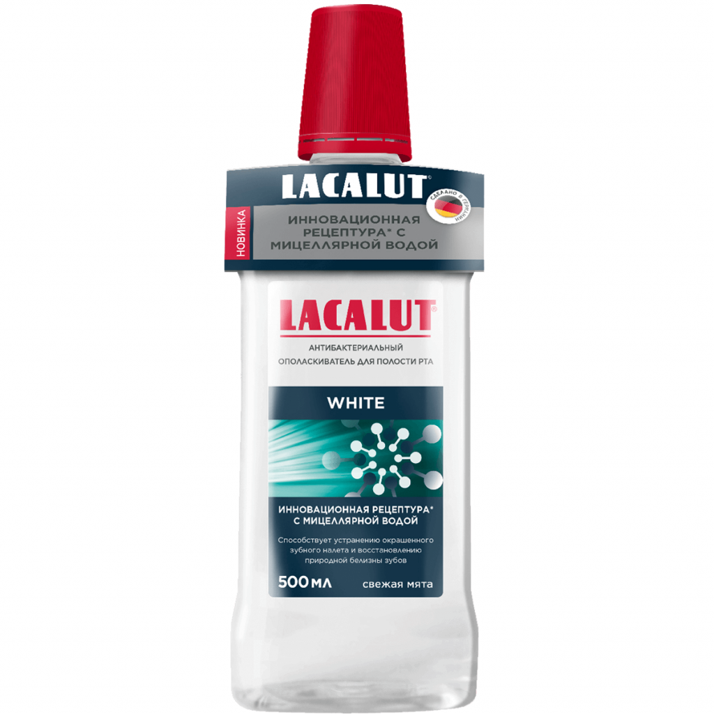 Антибактериальный ополаскиватель для полости рта Lacalut white снижает образование зубного налета и дополнительно очищает поверхность эмали благодаря мицеллам. Пирофосфат осветляет и поддерживает природную белизну зубов. Фторид укрепляет эмаль и защищает ее от кариеса. Антисептик и соединение цинка комплексно воздействуют на слизистую оболочку полости рта, предотвращая ее воспаление. Масло эвкалипта, тимол и ментол дополнительно освежают дыхание.