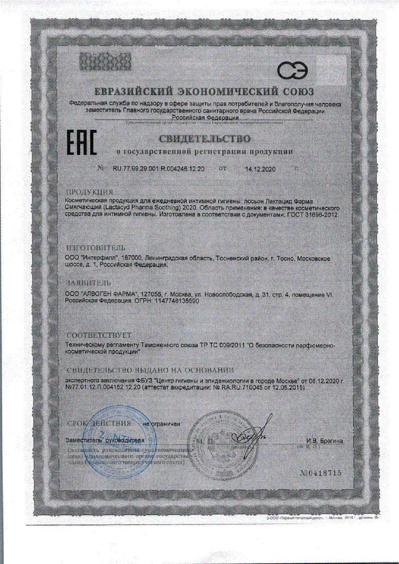 LACTACYD PHARMA SOOTHING помогает облегчить ощущение вагинального дискомфорта.