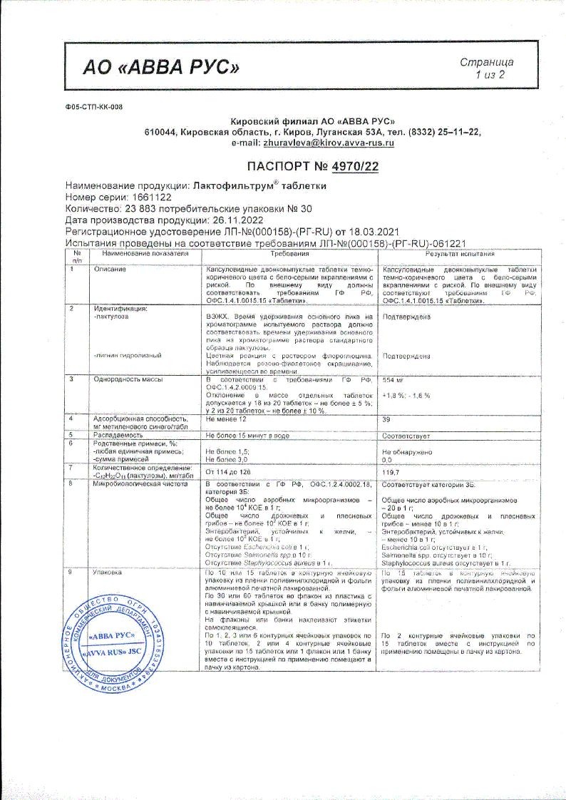 Энтеросорбент. Фармакологическое действие препарата Лактофильтрум® обусловлено свойствами входящих в его состав активных компонентов - лигнина и лактулозы.