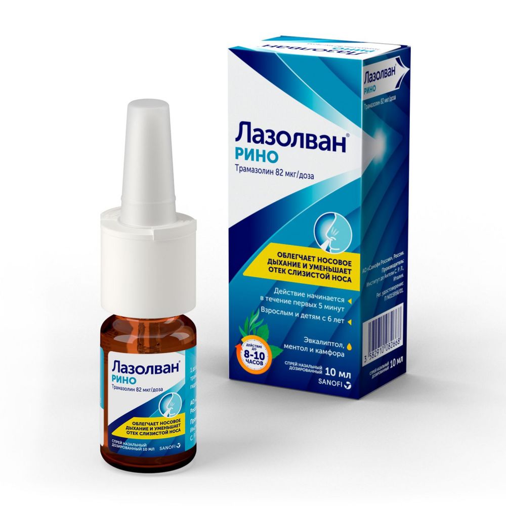 Активное вещество препарата Лазолван® Рино - трамазолина гидрохлорид, альфа-2-адреномиметик, вызывает сужение сосудов. При нанесении на слизистые оболочки носа вследствие сосудосуживающего действия препарат уменьшает отечность. В результате, проходимость носовых ходов быстро восстанавливается, носовое дыхание надолго облегчается.