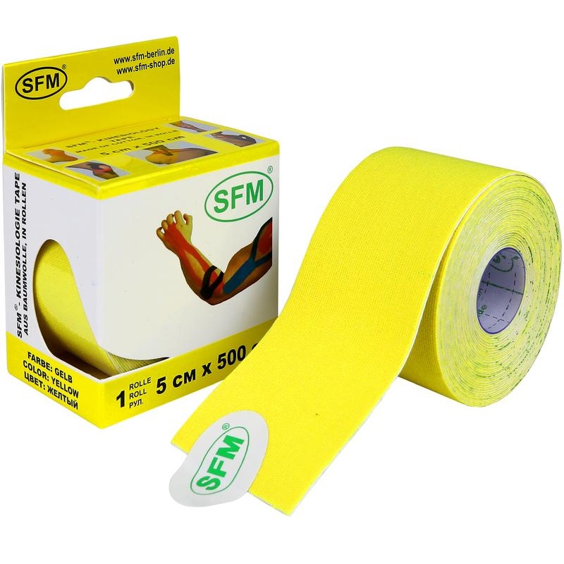 Лейкопластырь кинезио тейп SFM, 5 см Х 500см, с логотипом, синтетический изготовлен из синтетического волокна с нанесением на него клейкой гипоаллергенной основы. Кинезиотейп SFM 5 см на 500 см используется для профилактики и лечения травм опорно-двигательного аппарата, способен быстро уменьшить боль и воспаление, как при спортивных травмах, так и в повседневной жизни.