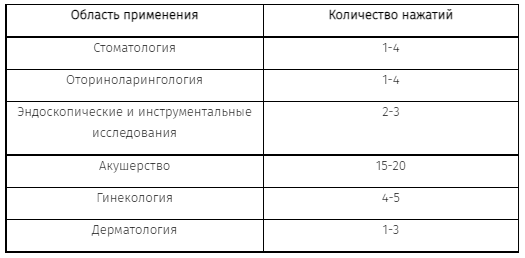Рекомендации по количеству нажатий в различных областях применения: